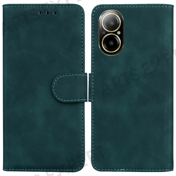 For Realme C67 4G Case Solid Color Leather Folio Wallet Phone Cover - Green