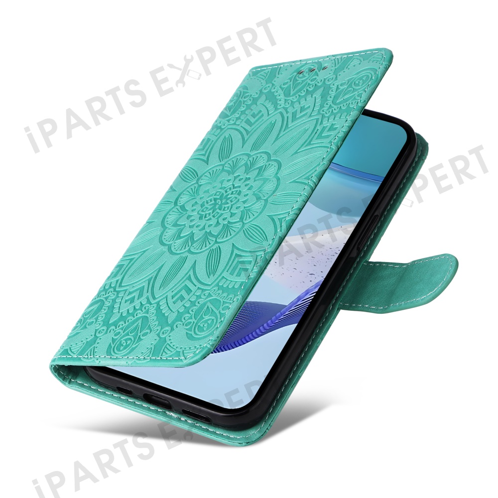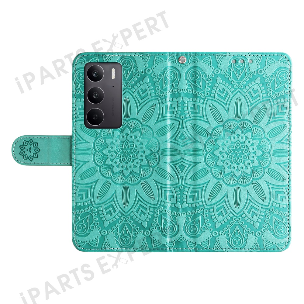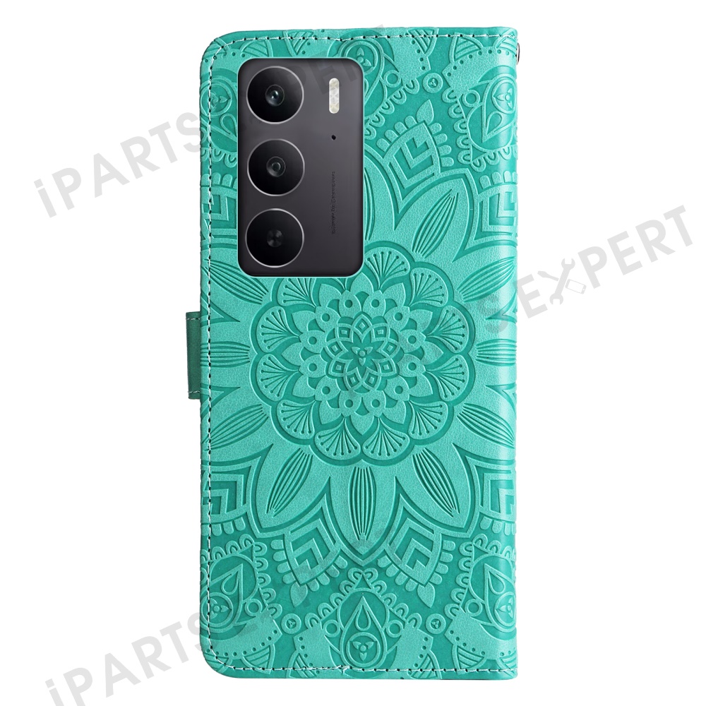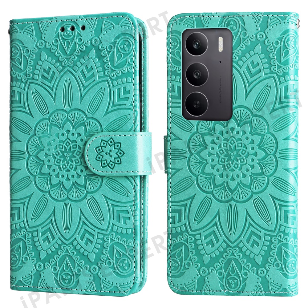 For Oppo A5 5G / 4G / Realme C75 5G / C75 4G / C73 5G / C71 4G / 14x 5G Case Sunflower Imprint Leather Wallet Phone Cover - Green
