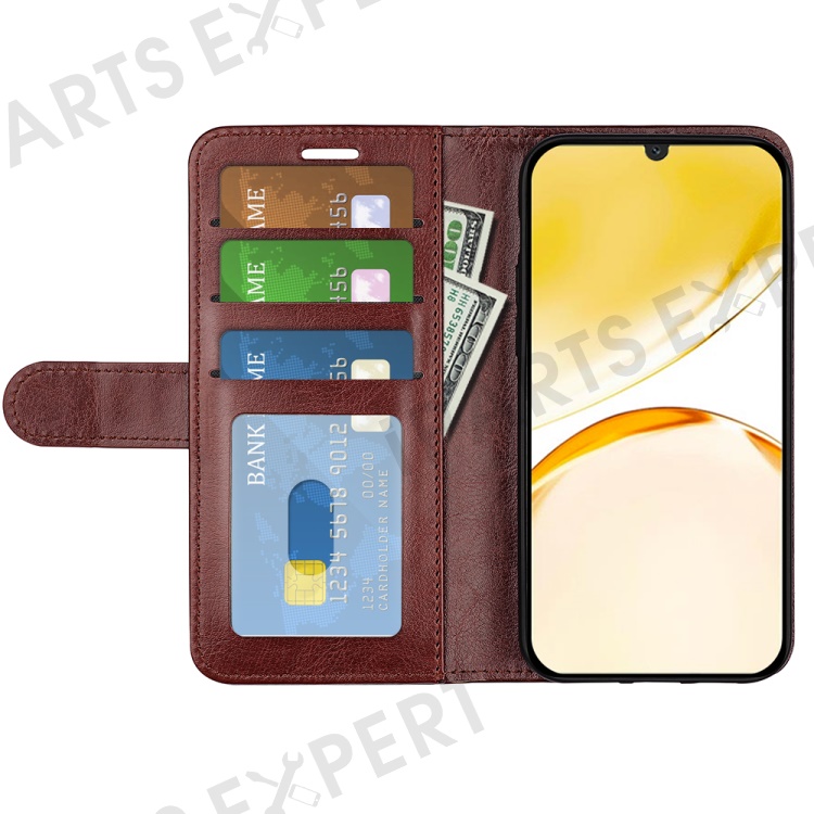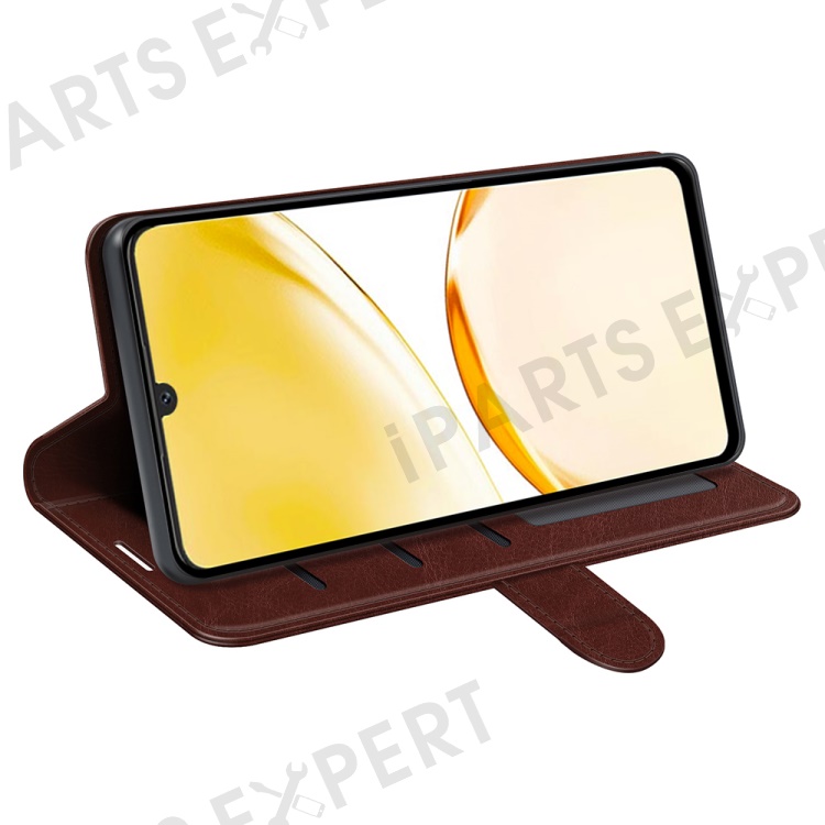 For Realme Narzo N53 4G Anti-collision Crazy Horse Texture Phone Wallet Case PU Leather Stand Cover - Brown