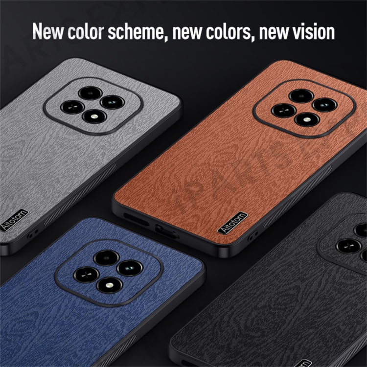 For Realme V60 5G Case PU Leather Coated PC+TPU Phone Cover Wood Texture - Black