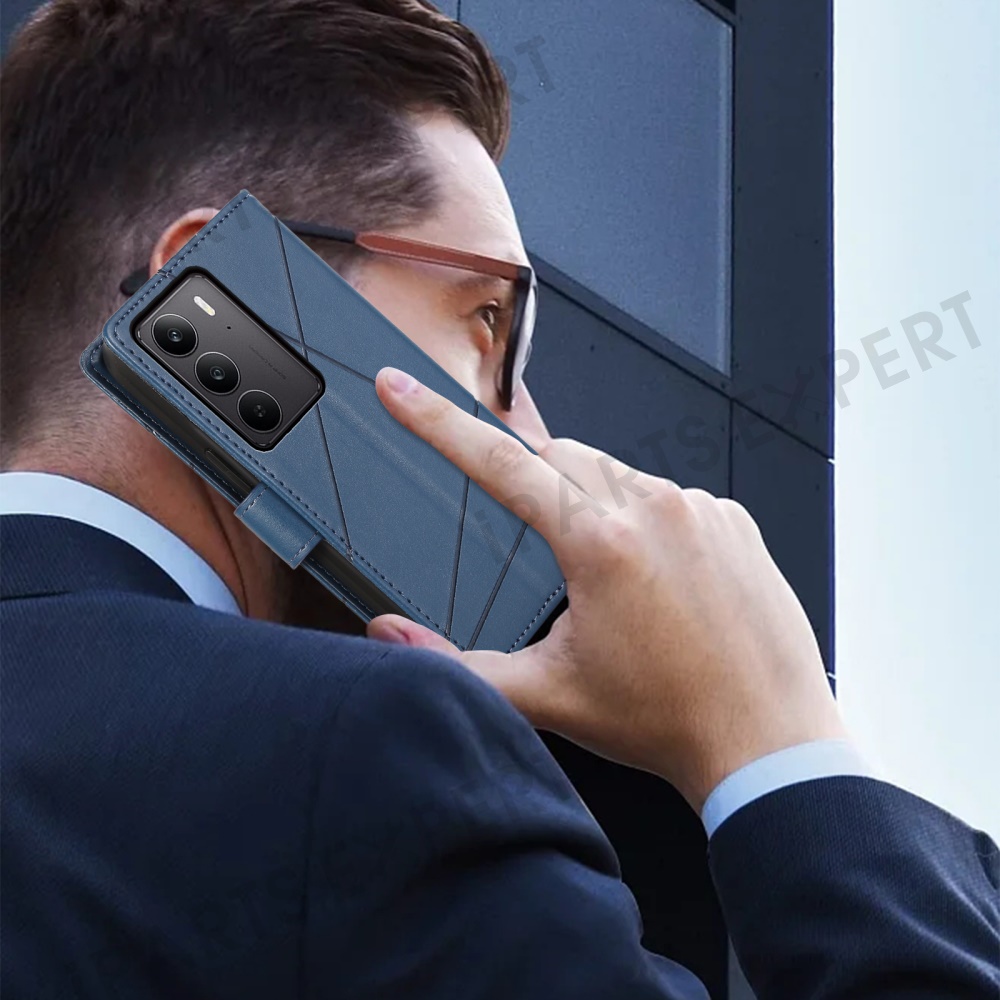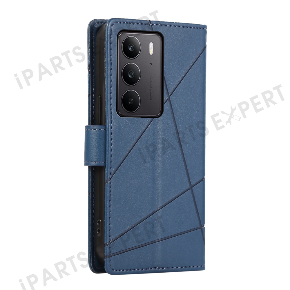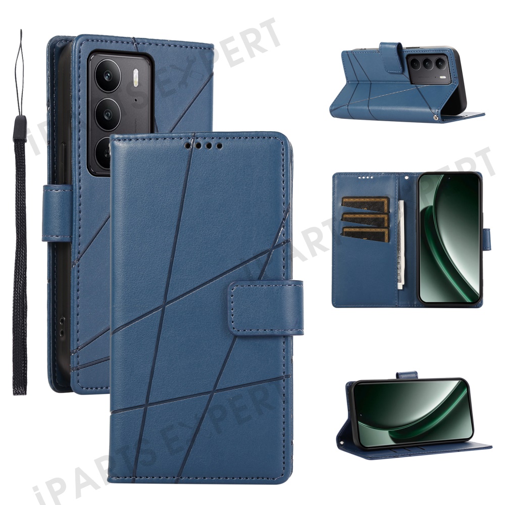 For Realme V60 Pro 5G / C75 4G Phone Case Line Imprint Leather Wallet Cover - Blue