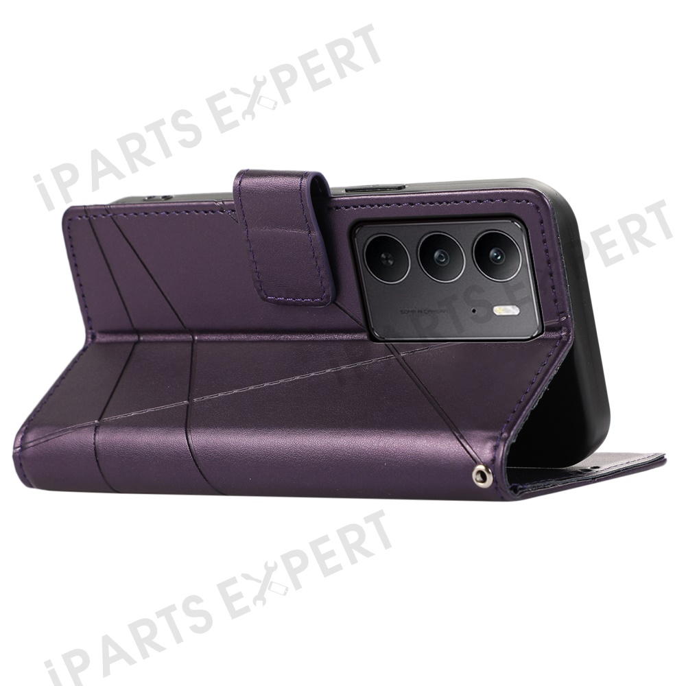 For Realme V60 Pro 5G / C75 4G Phone Case Line Imprint Leather Wallet Cover - Purple