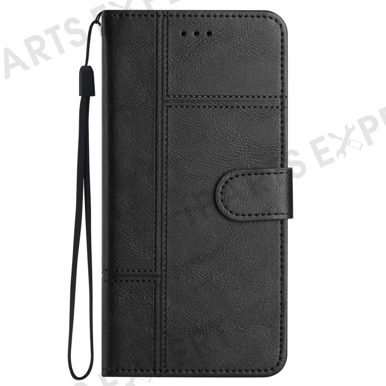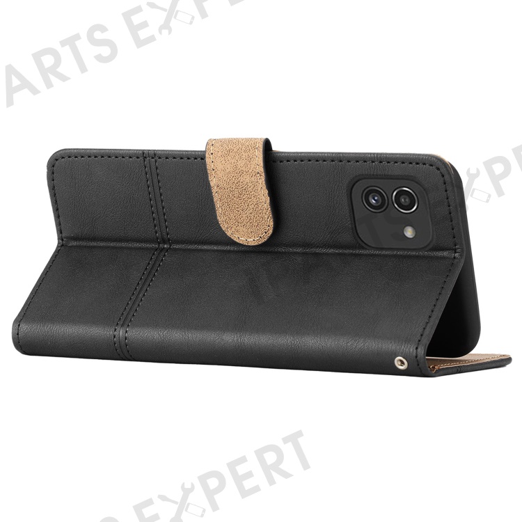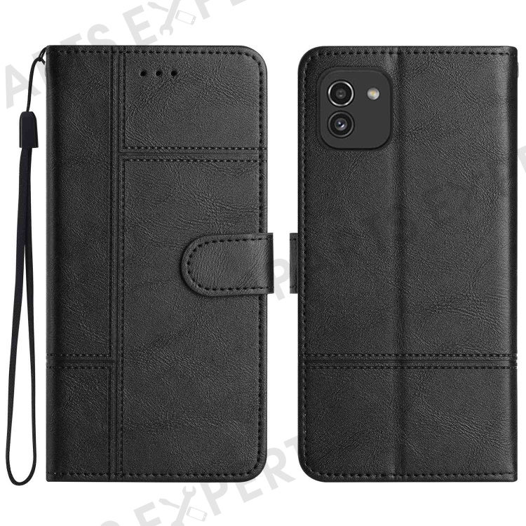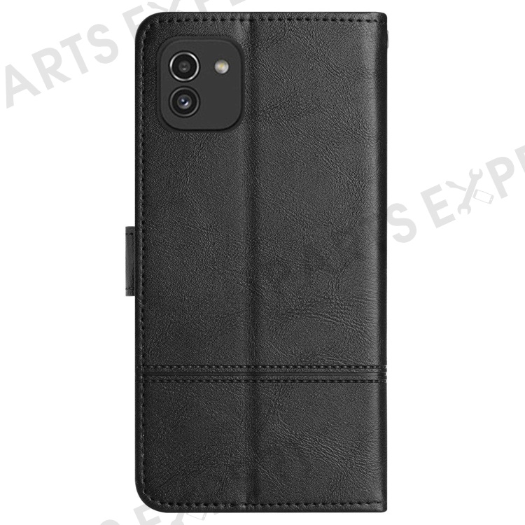 For Samsung Galaxy A03 (164.2mm) Cowhide Texture Business Style PU Leather Cover Sewing Line Decor Wallet Stand Phone Shockproof Case - Black
