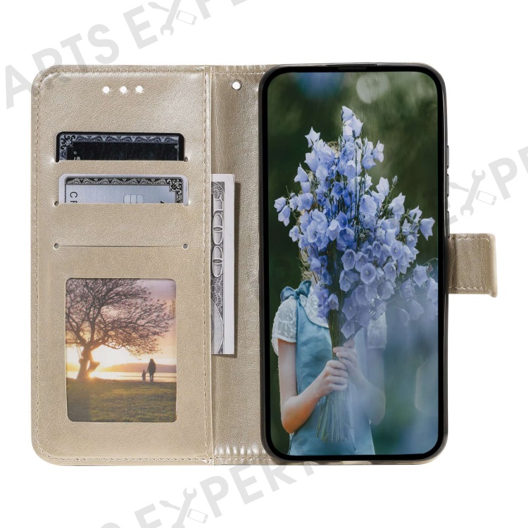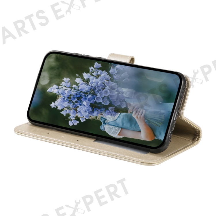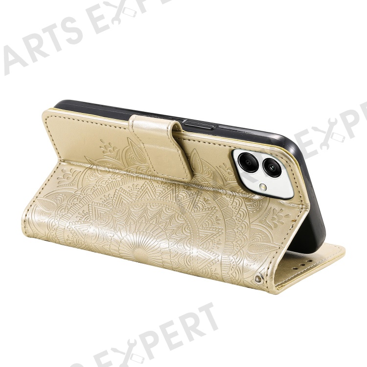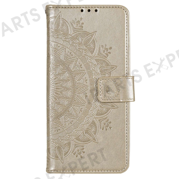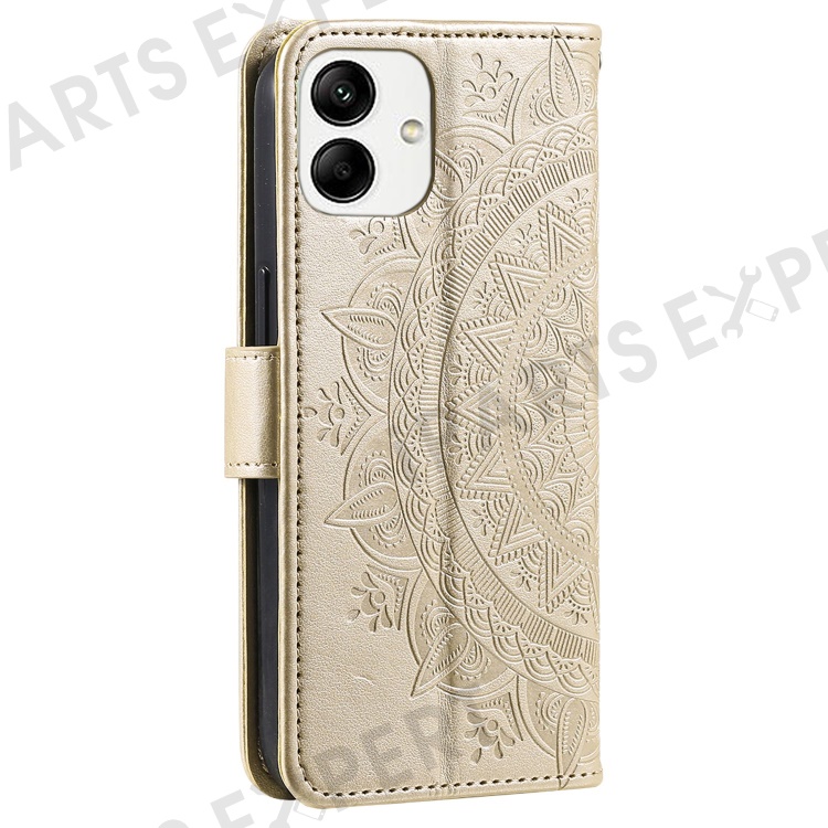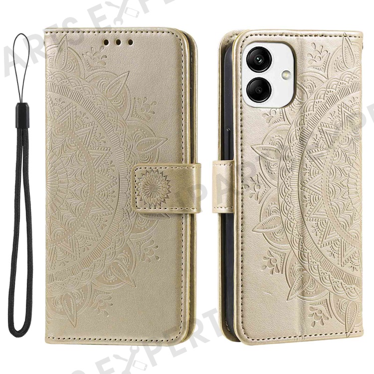 For Samsung Galaxy A04 4G (164.4 x 76.3 x 9.1 mm) Mandala Flower Pattern Imprinted Stand Case Shockproof PU Leather Wallet Phone Cover - Gold