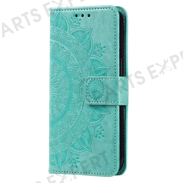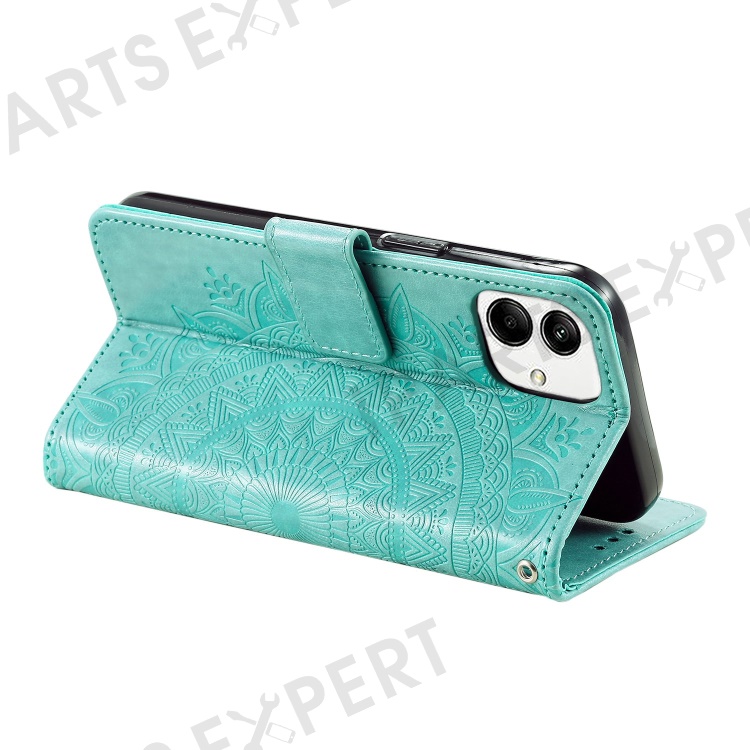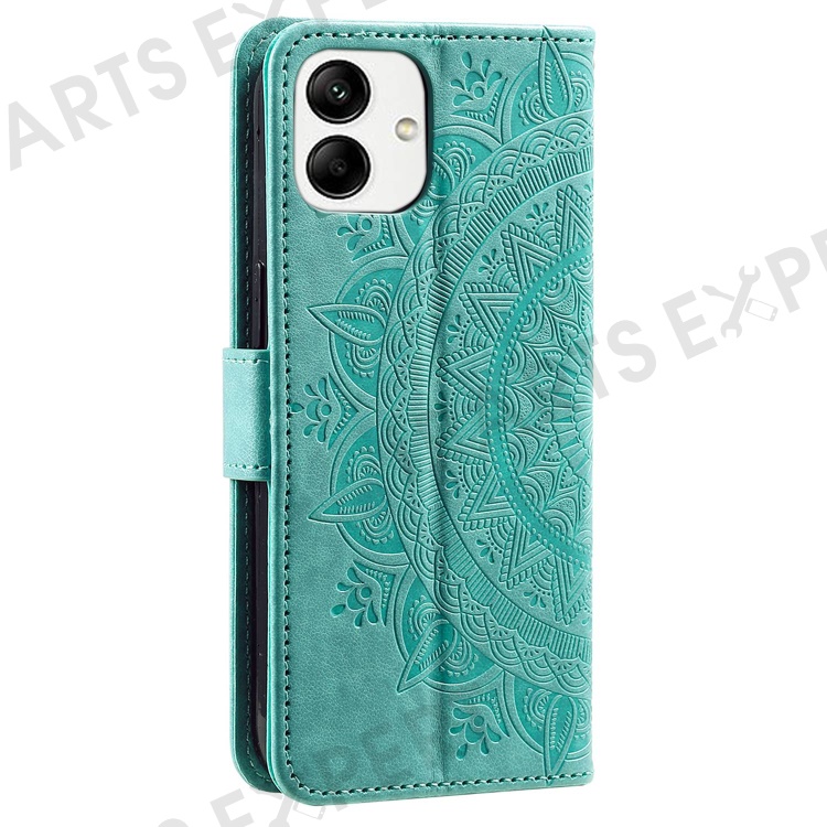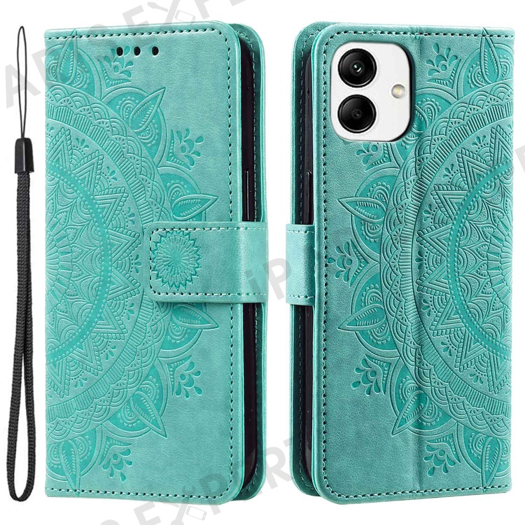 For Samsung Galaxy A04 4G (164.4 x 76.3 x 9.1 mm) Mandala Flower Pattern Imprinted Stand Case Shockproof PU Leather Wallet Phone Cover - Green