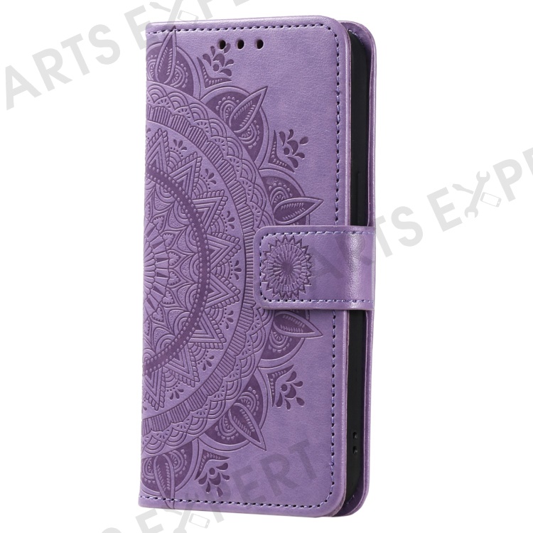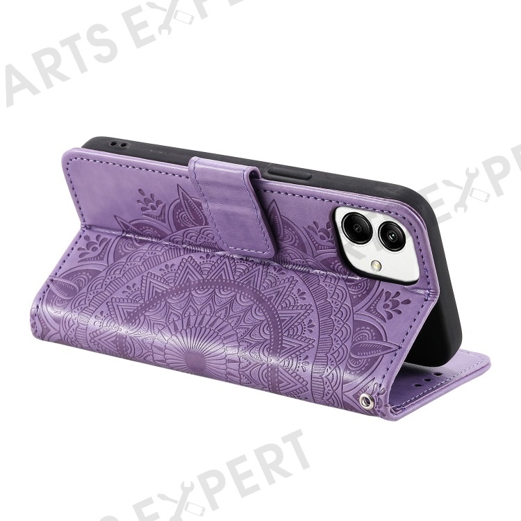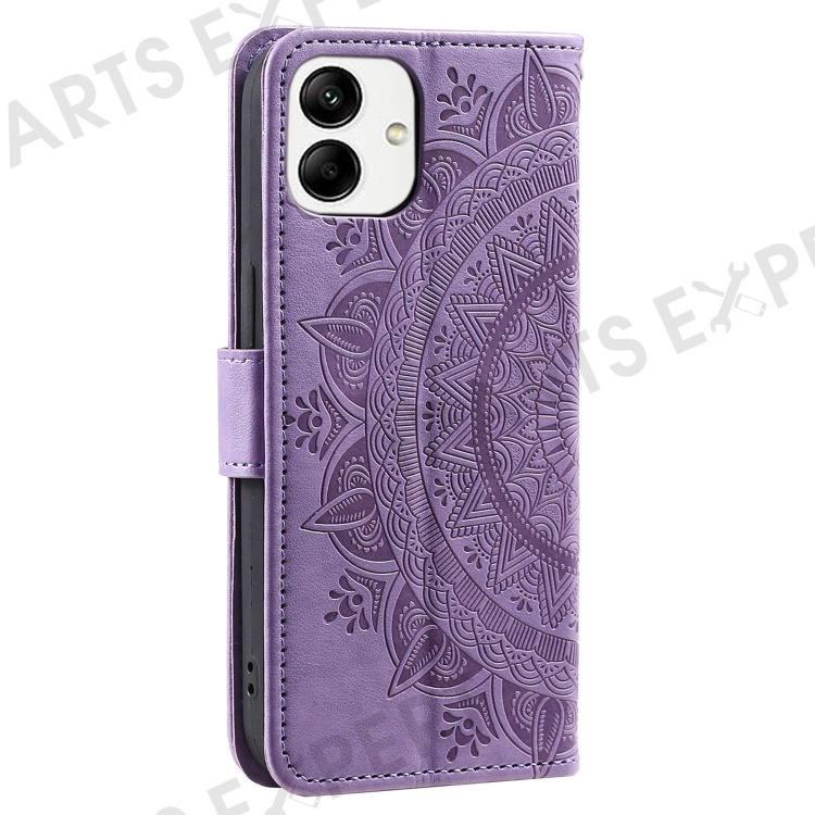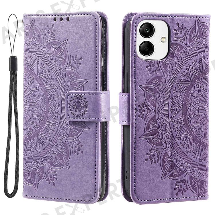 For Samsung Galaxy A04 4G (164.4 x 76.3 x 9.1 mm) Mandala Flower Pattern Imprinted Stand Case Shockproof PU Leather Wallet Phone Cover - Purple