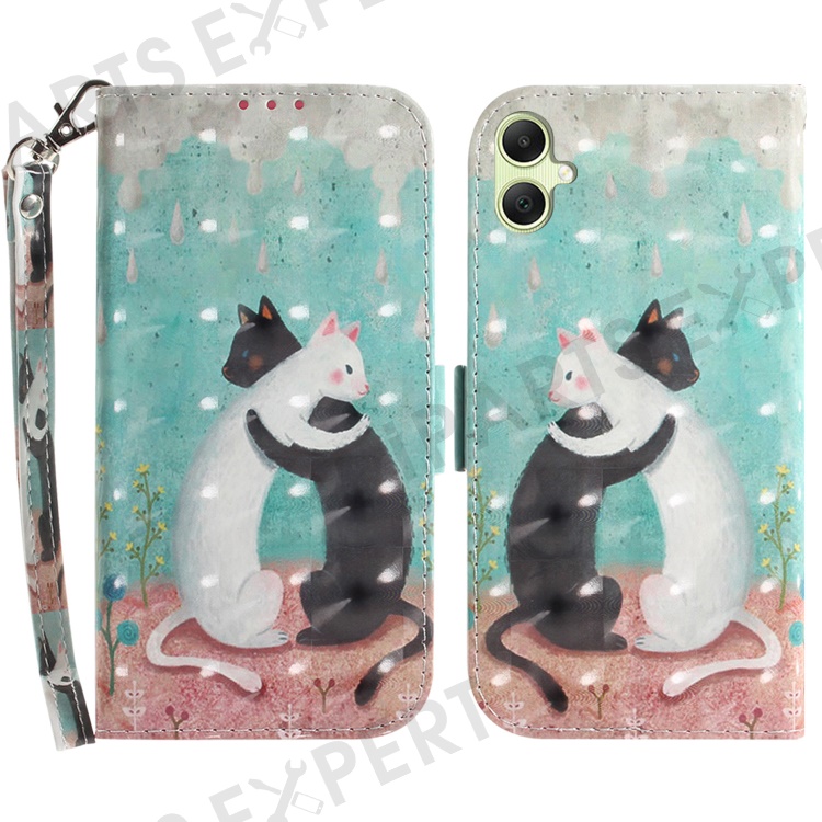 For Samsung Galaxy A05 4G Case Mobile Phone 3D Pattern Printed PU Leather Cover - Two Cats