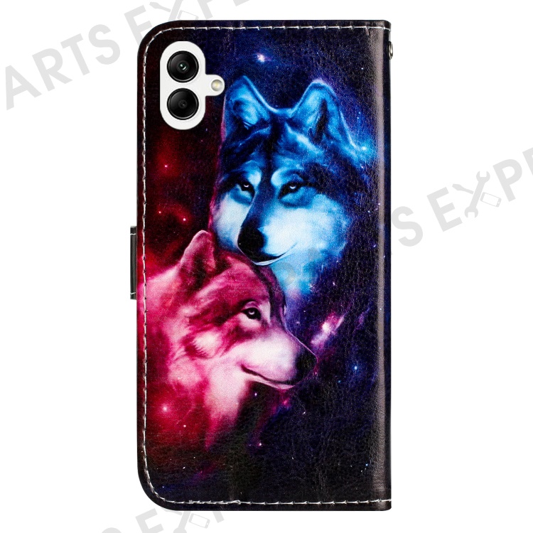 For Samsung Galaxy A05 4G Case PU Leather Stand Pattern Printing Phone Cover - Couple Wolf