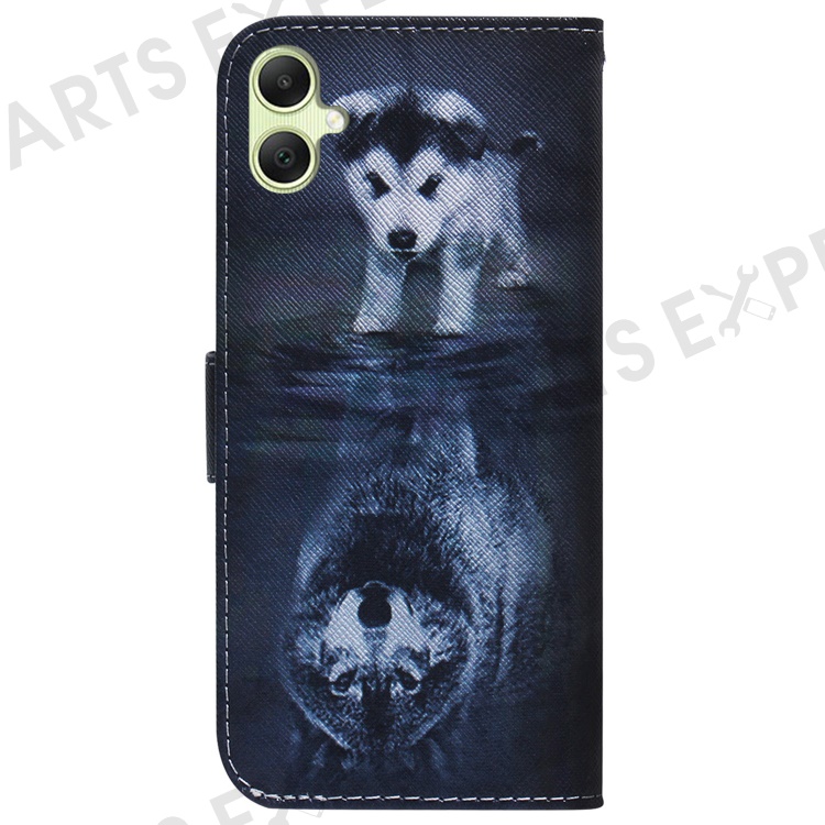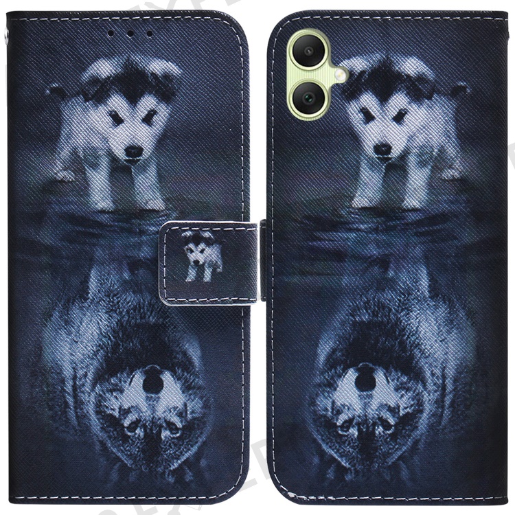 For Samsung Galaxy A05 4G Case PU Leather Wallet Pattern Printing Phone Cover - Dog and Wolf
