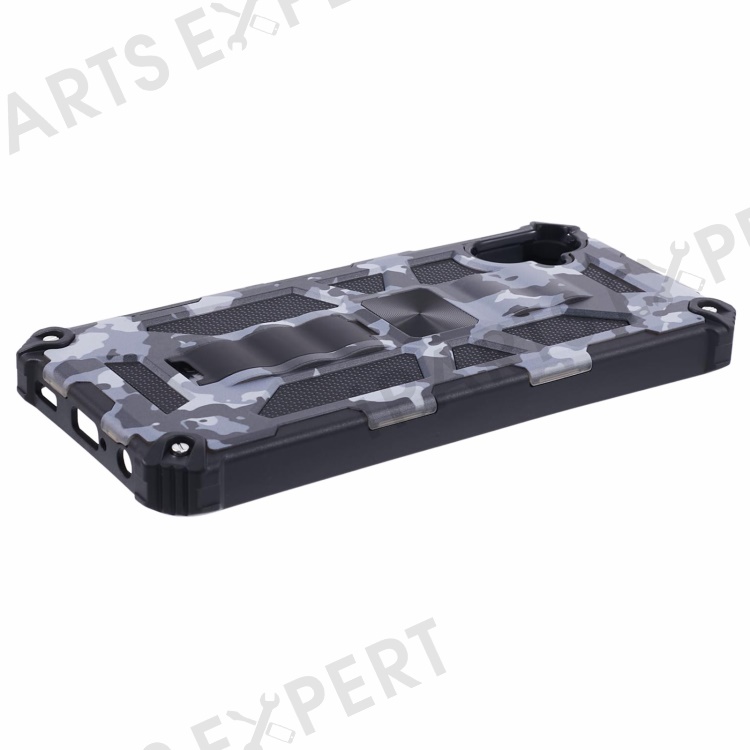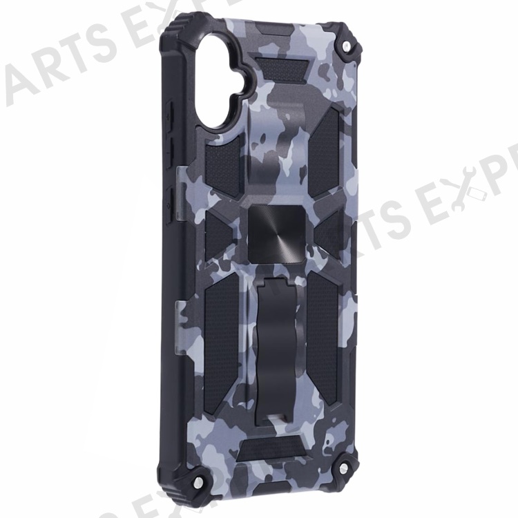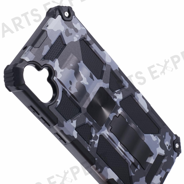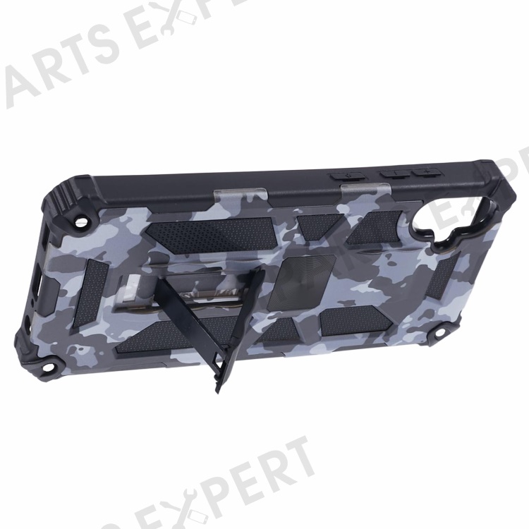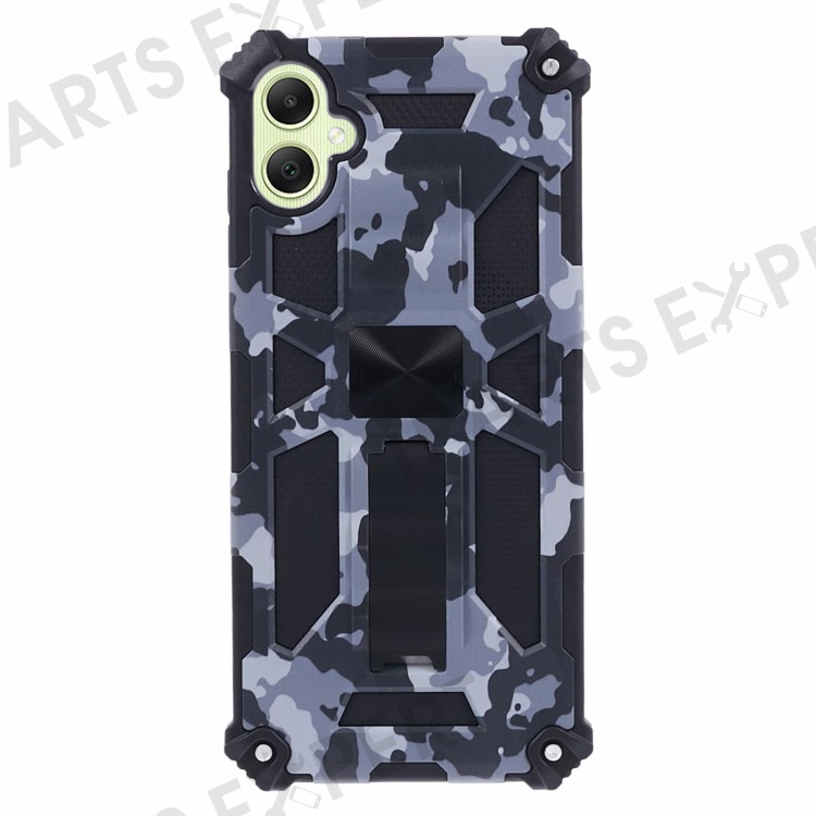 For Samsung Galaxy A06 4G Case Kickstand PC+TPU Camouflage Military Grade Phone Cover - Black