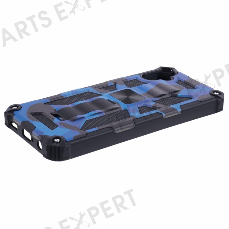 For Samsung Galaxy A06 4G Case Kickstand PC+TPU Camouflage Military Grade Phone Cover - Blue