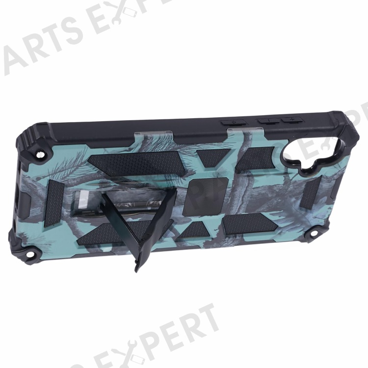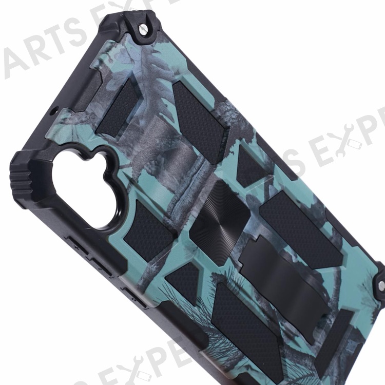 For Samsung Galaxy A06 4G Case Kickstand PC+TPU Camouflage Military Grade Phone Cover - Light Green