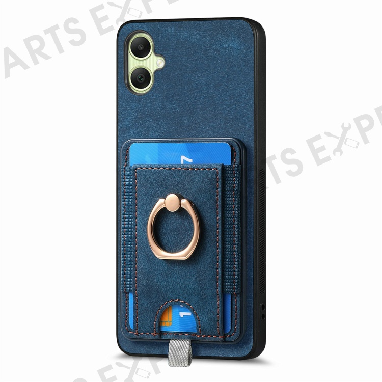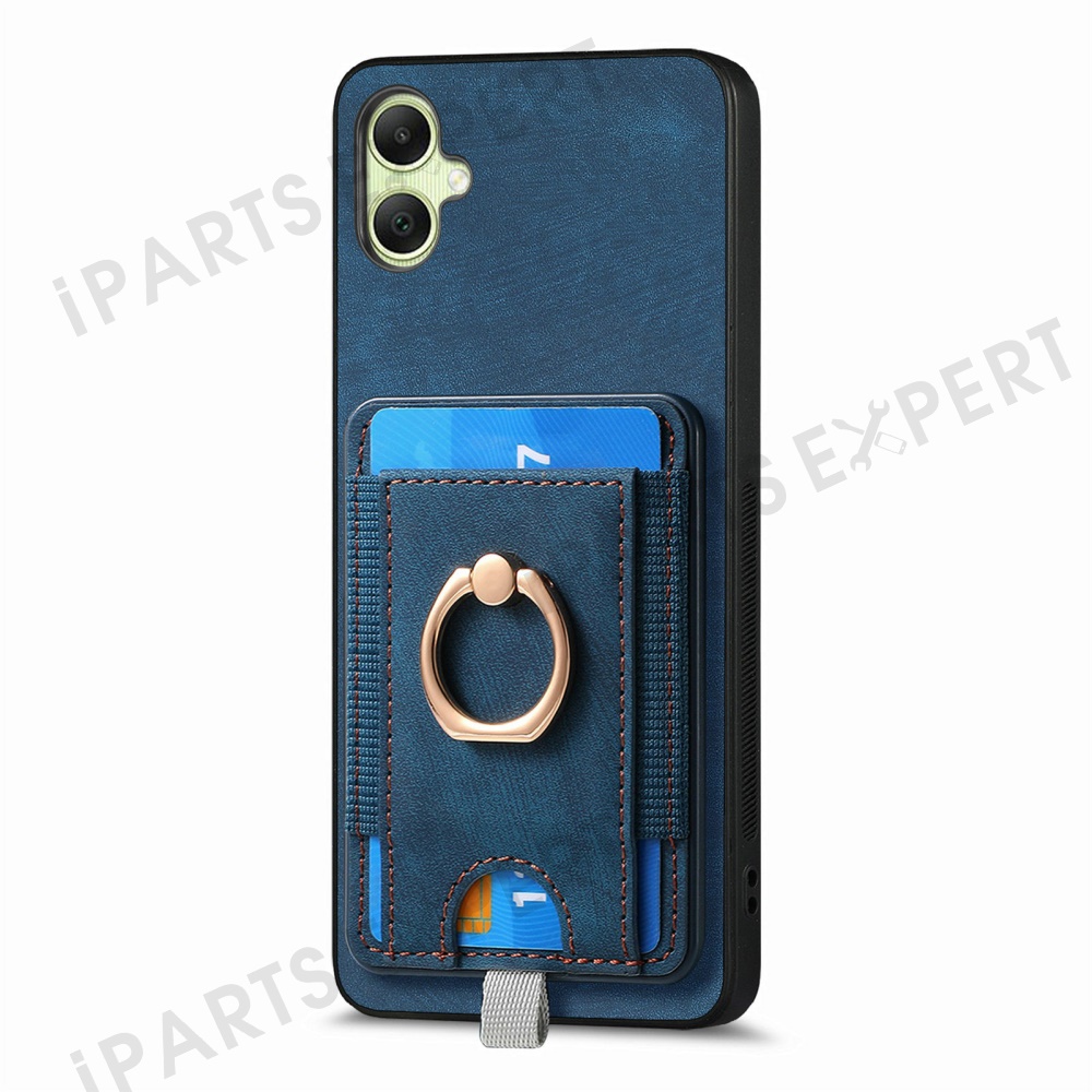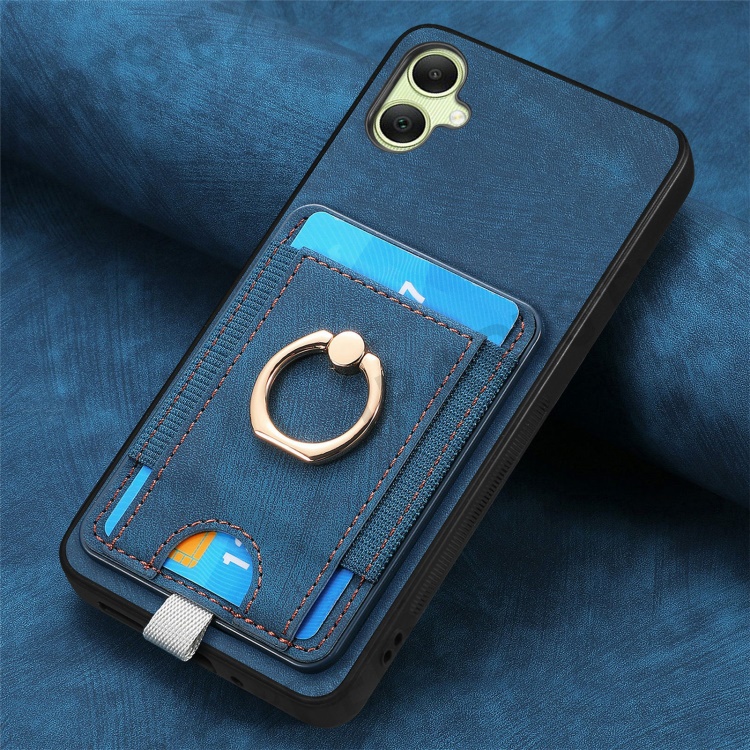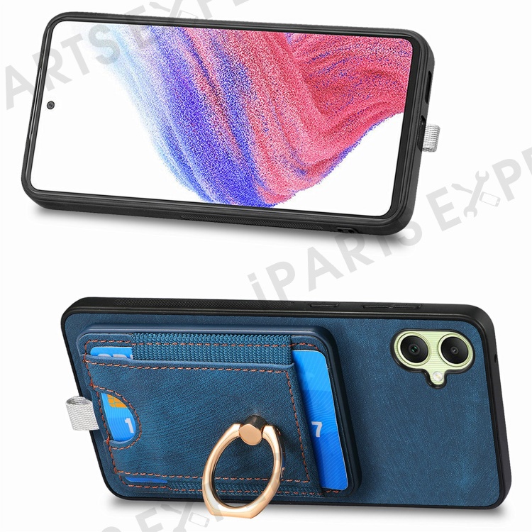 For Samsung Galaxy A06 4G Magnetic Case Card Holder Ring Kickstand PU Leather Phone Back Cover - Blue