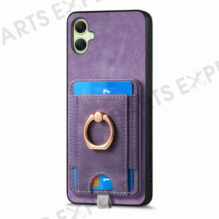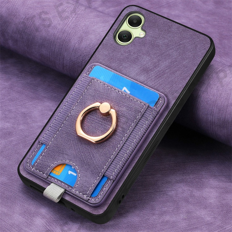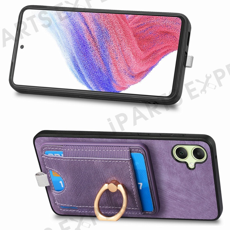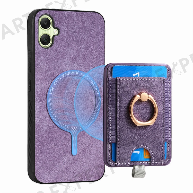 For Samsung Galaxy A06 4G Magnetic Case Card Holder Ring Kickstand PU Leather Phone Back Cover - Purple
