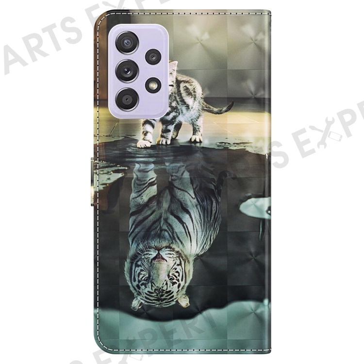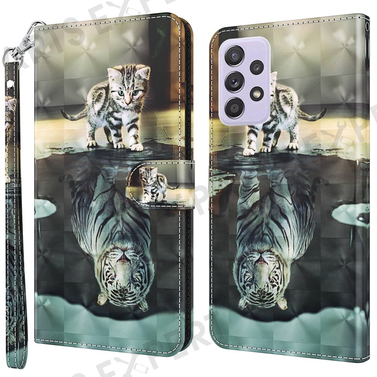 For Samsung Galaxy A13 4G / 5G 3D Pattern Printing Wallet Phone Case PU Leather Stand Magnetic Closure Cover with Strap - Cat / Tiger