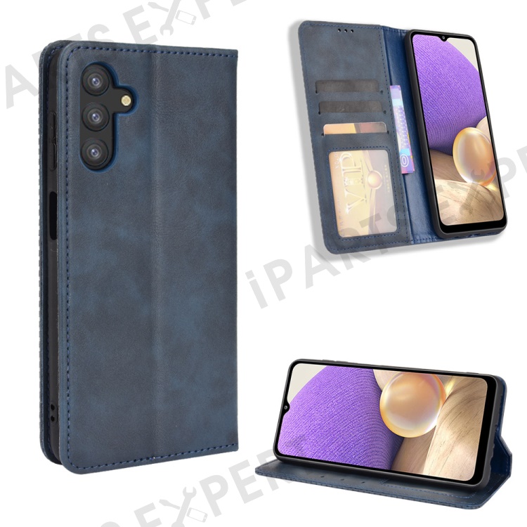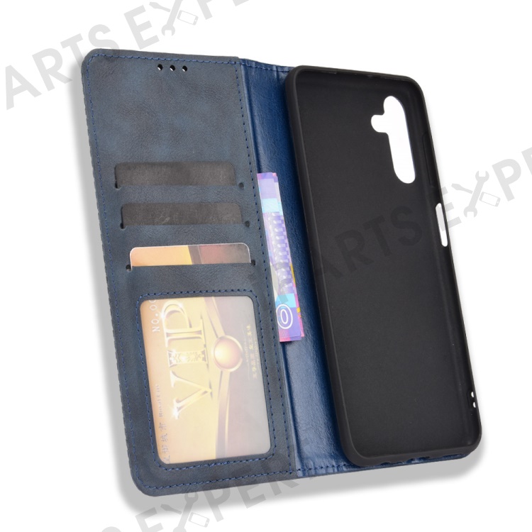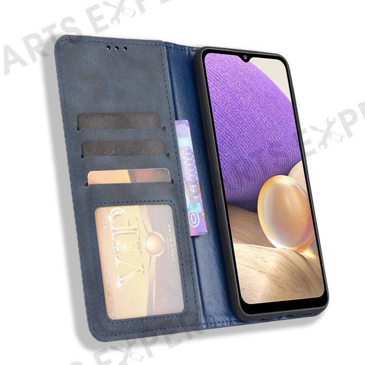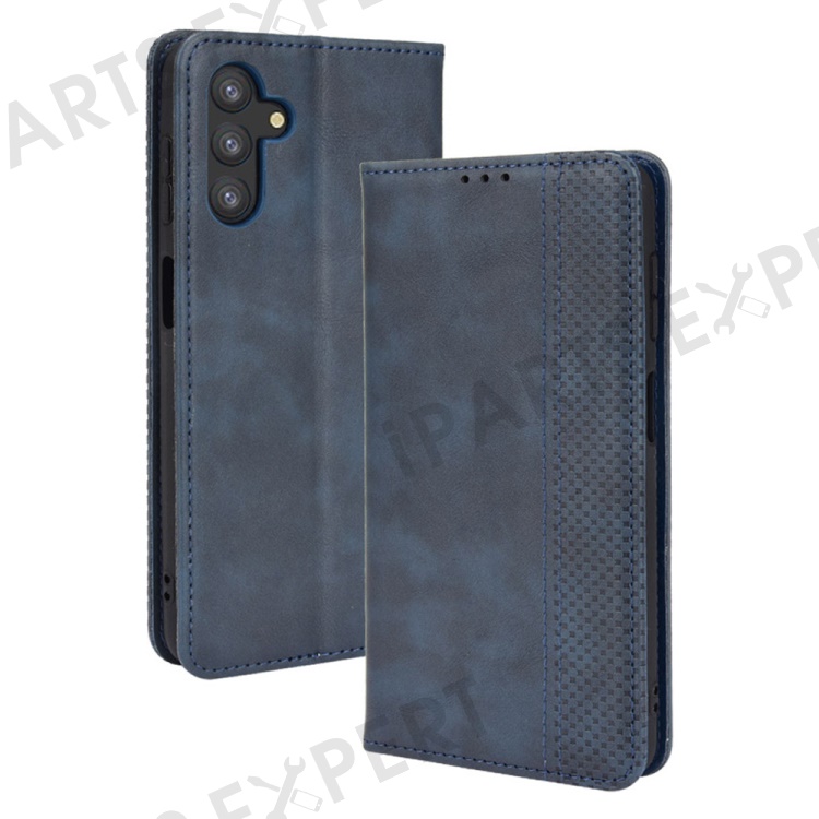 For Samsung Galaxy A13 5G / A04s 4G (164.7mm) Retro Textured Surface Anti-Drop Phone Leather Case Wallet Stand Cover - Blue