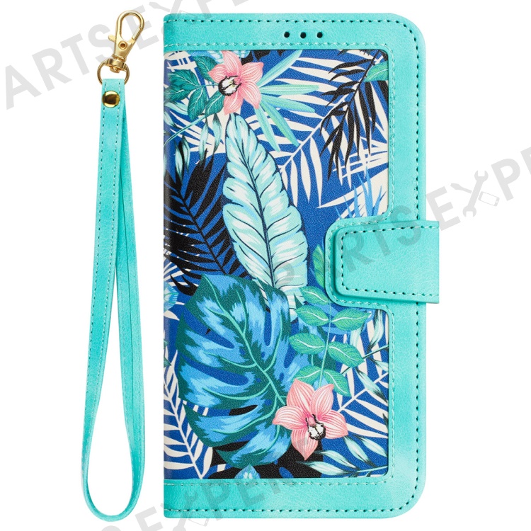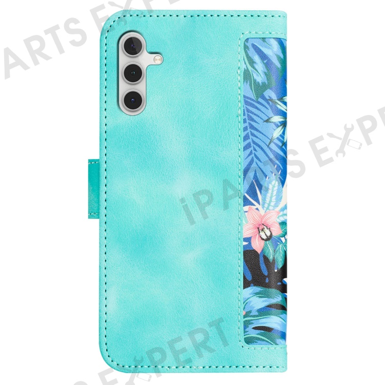 For Samsung Galaxy A14 4G / 5G Phone Case Flower Pattern Printing PU Leather Stand Cover with Card Holder - Green