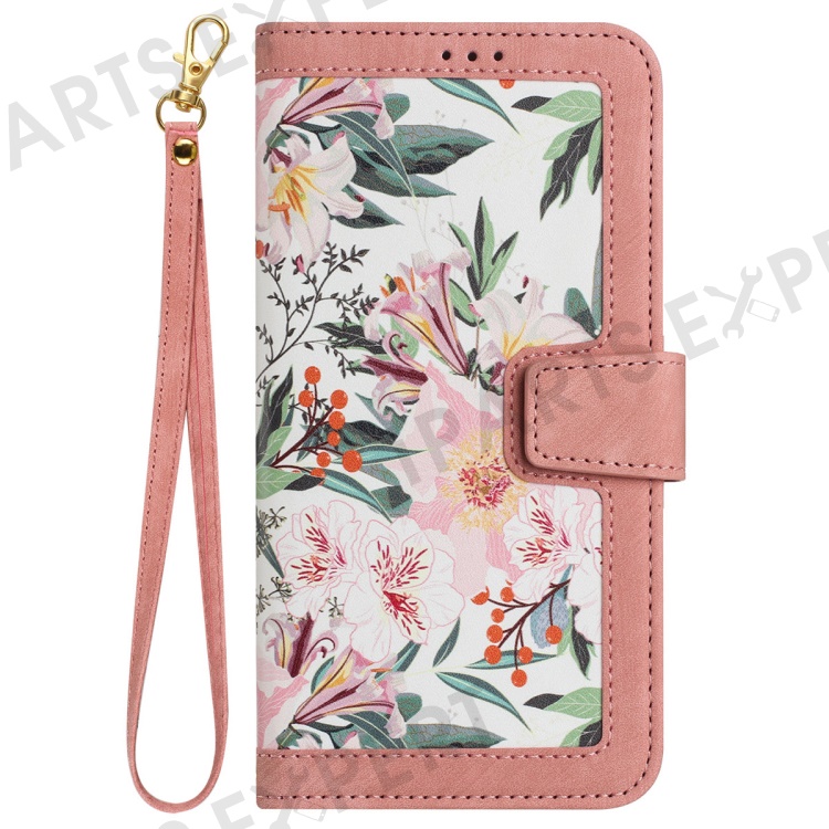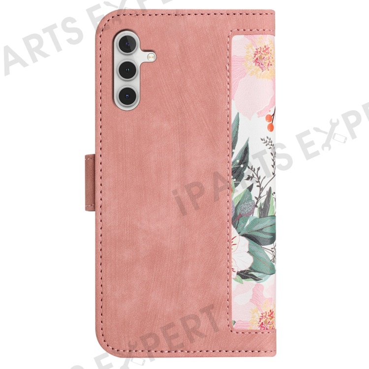 For Samsung Galaxy A14 4G / 5G Phone Case Flower Pattern Printing PU Leather Stand Cover with Card Holder - Pink