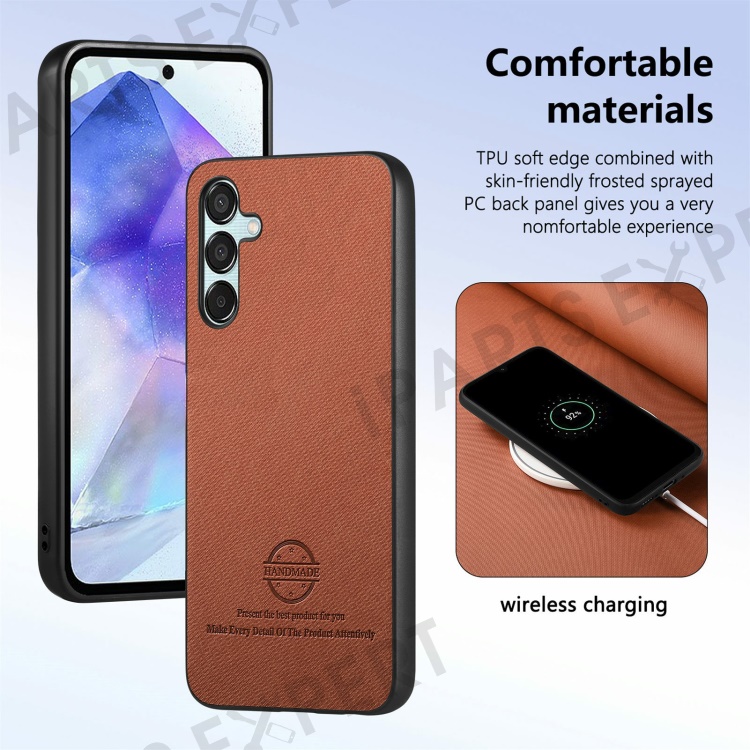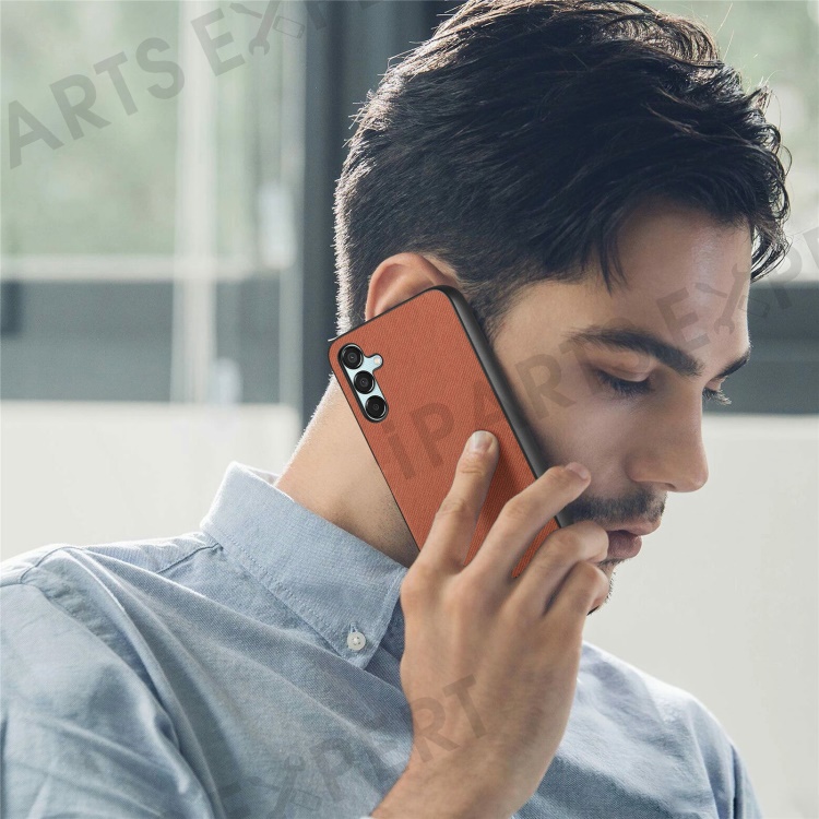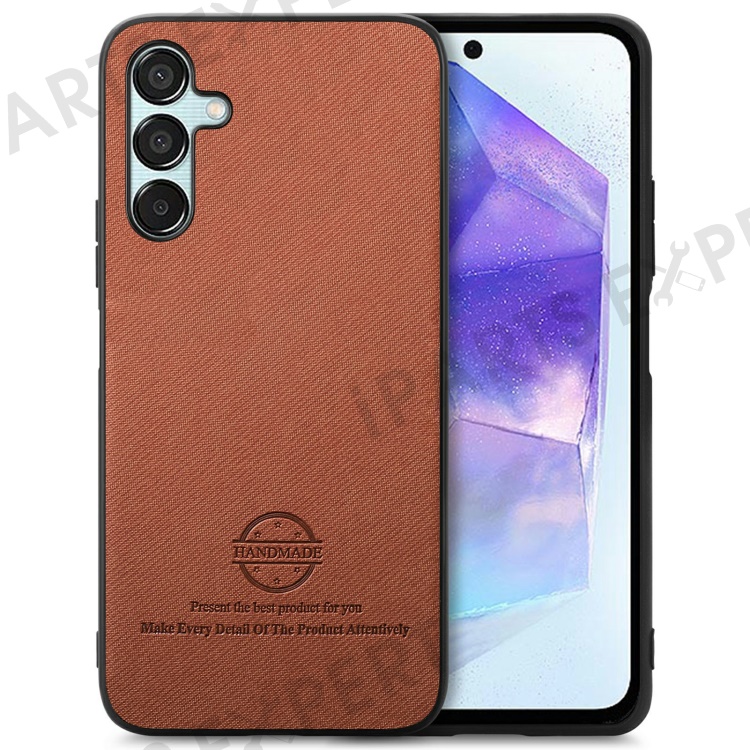 For Samsung Galaxy A16 4G / 5G Case Cloth Texture Leather+PC+TPU Anti-Drop Phone Cover - Brown