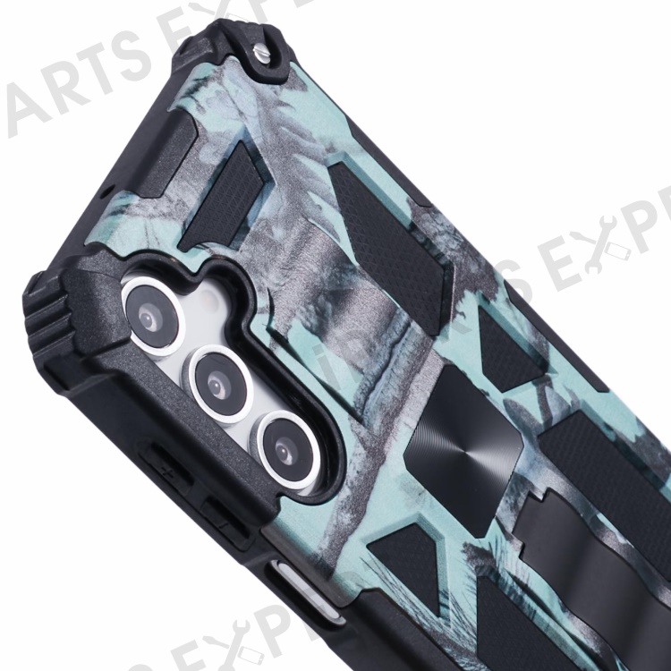For Samsung Galaxy A16 4G / 5G Case Kickstand PC+TPU Camouflage Military Grade Phone Cover - Light Green