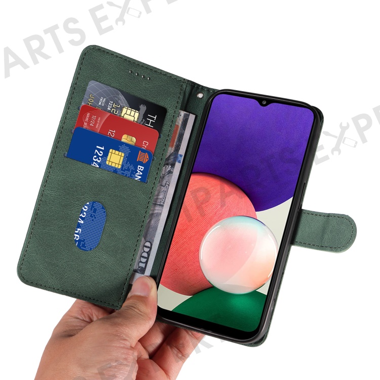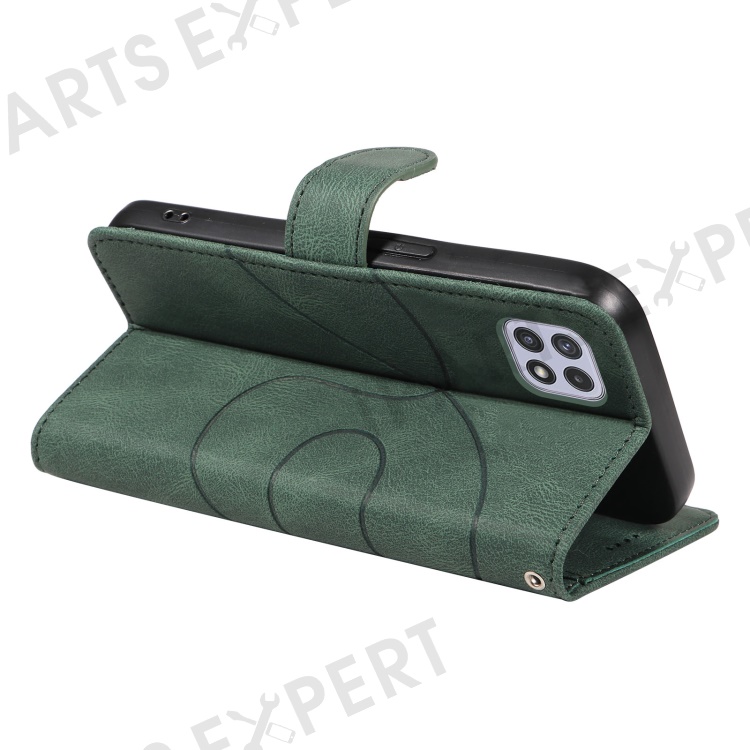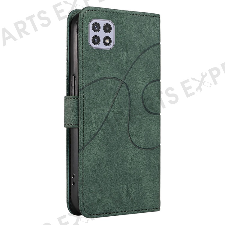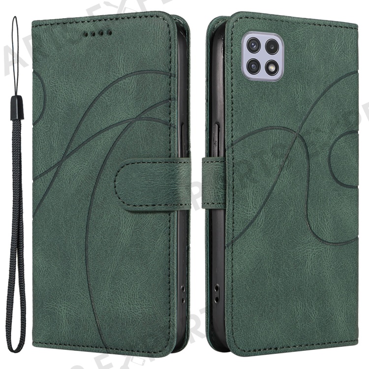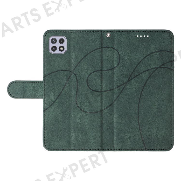 For Samsung Galaxy A22 5G (EU Version) A22S PU Leather Phone Case Imprinted Line Wallet Stand Shell - Green