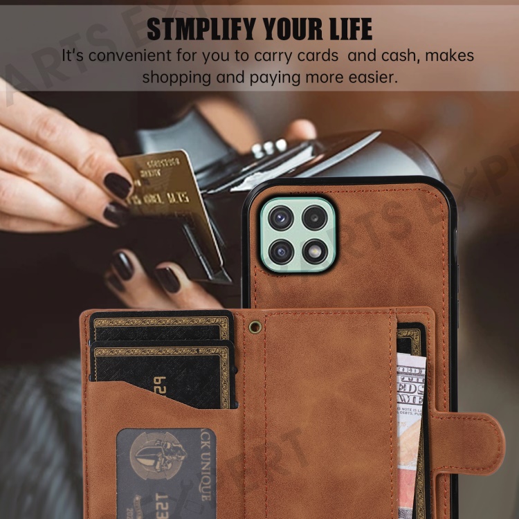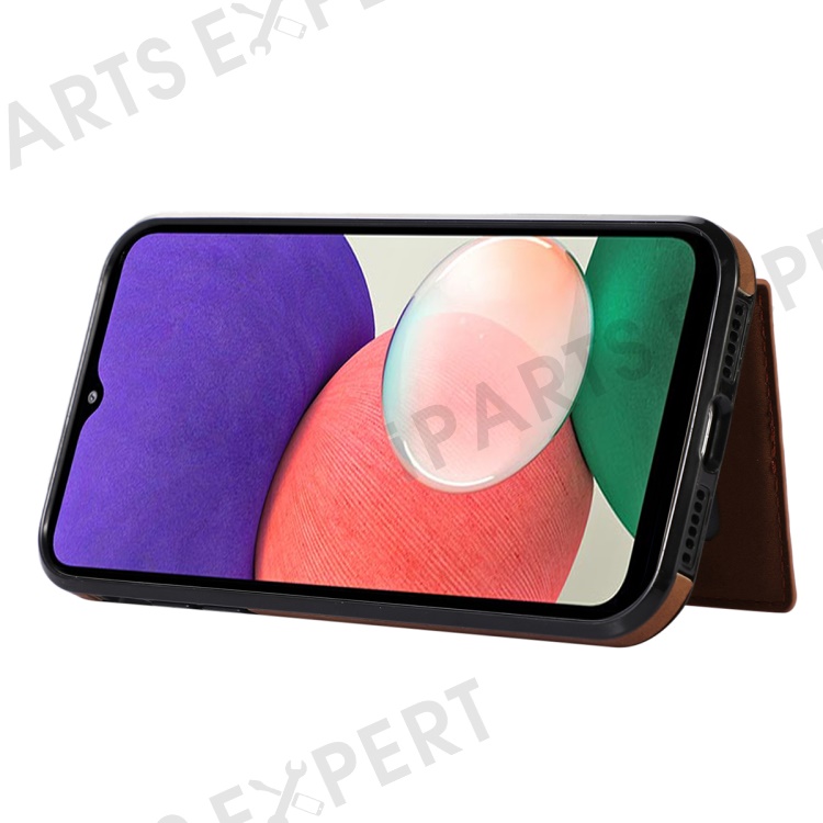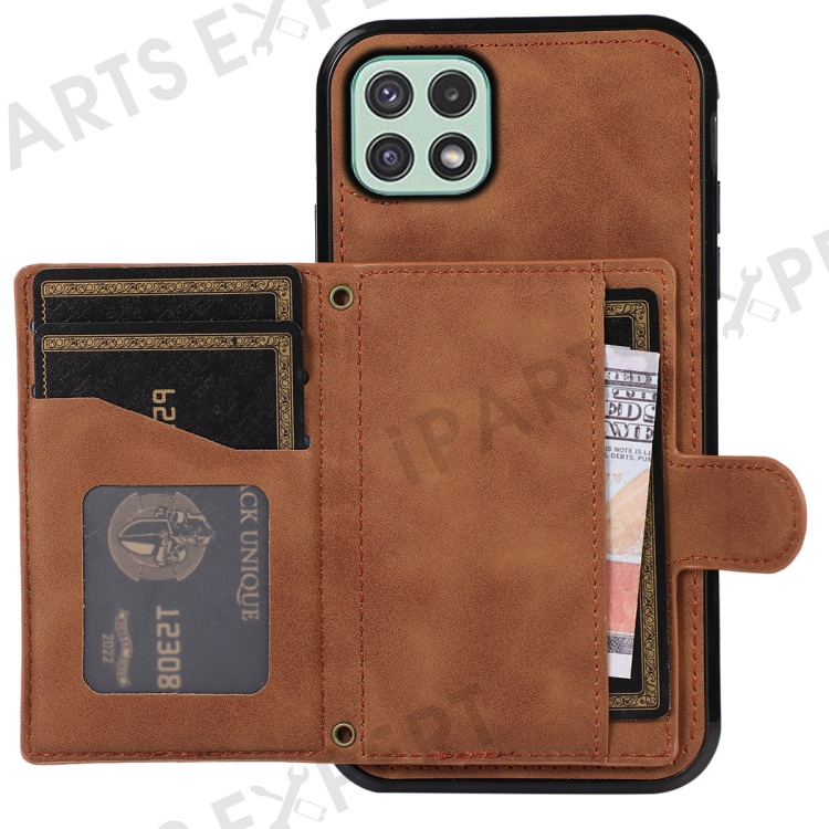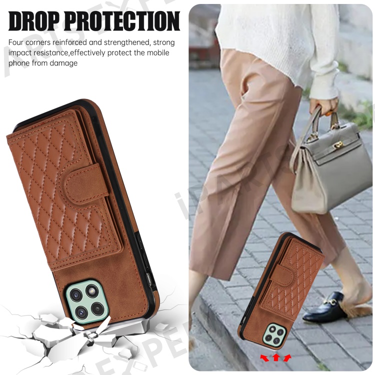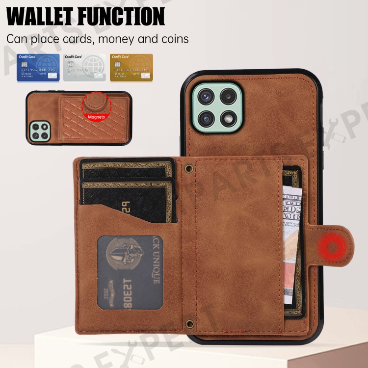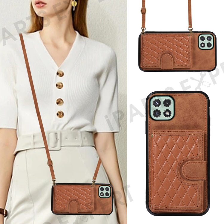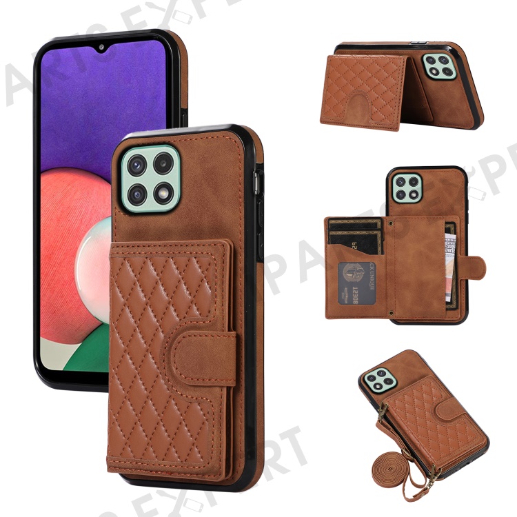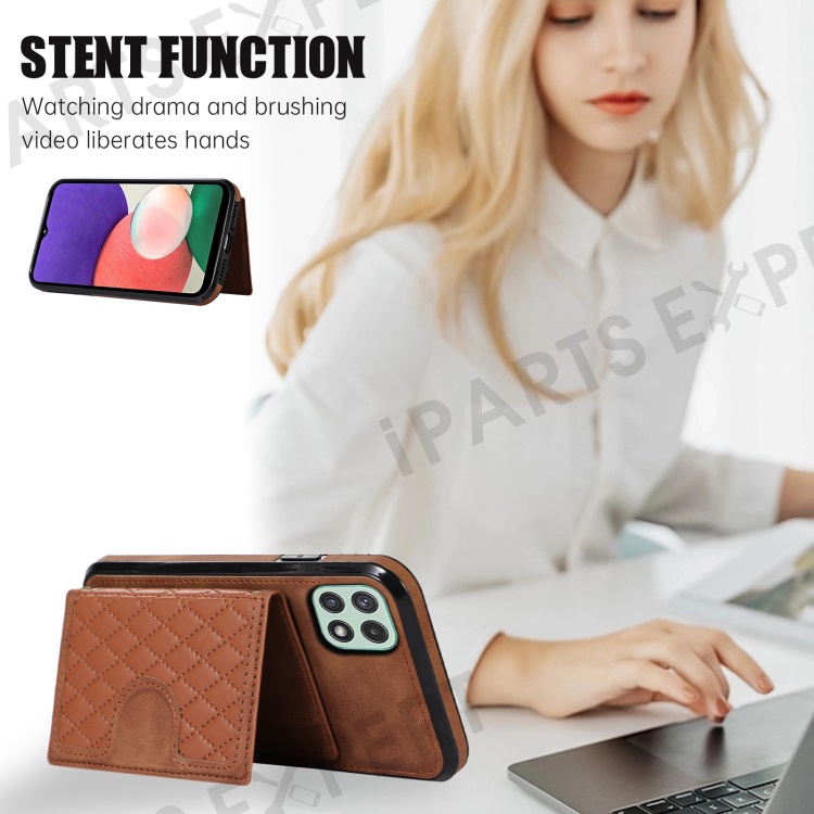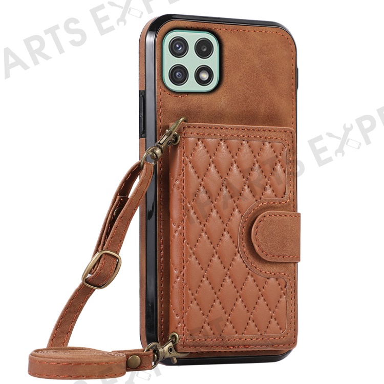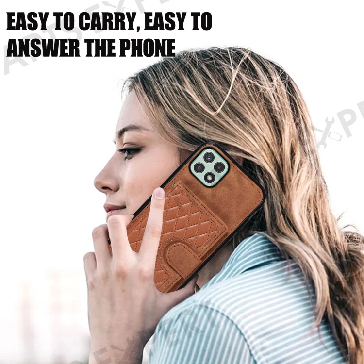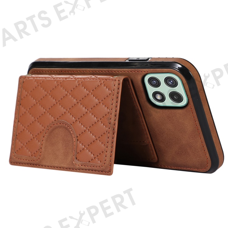 For Samsung Galaxy A22 5G (EU Version) Rhombus Grid Phone Case TPU+PU Leather Kickstand Shell - Brown