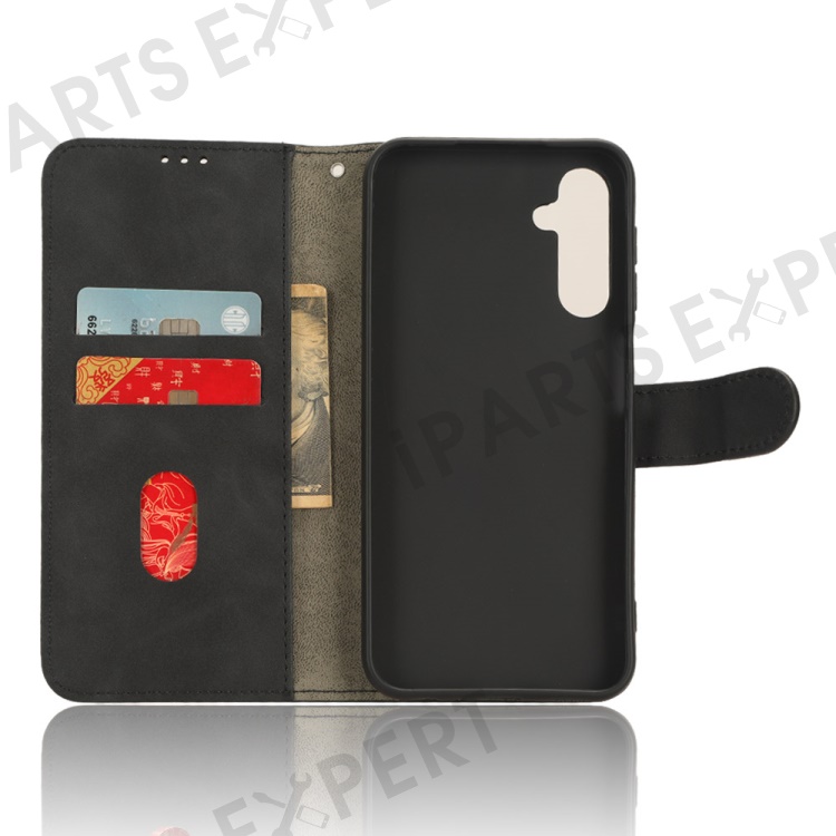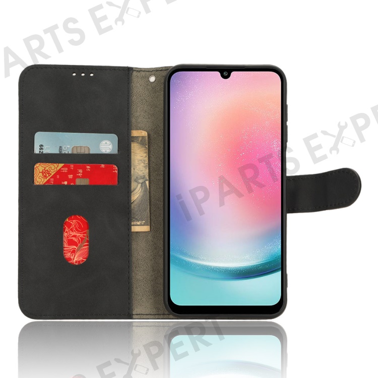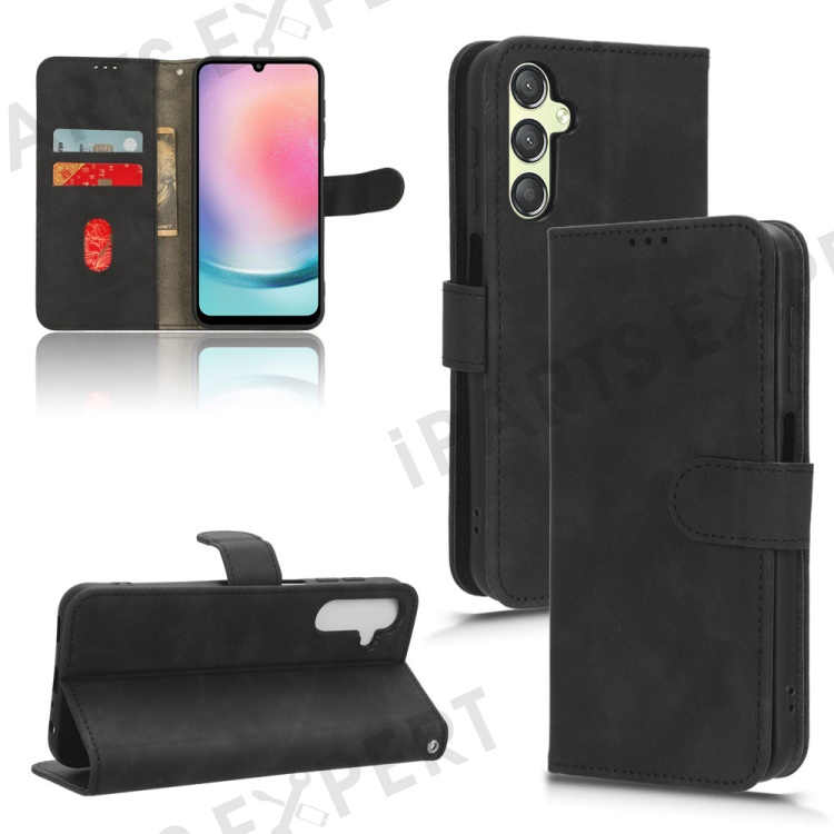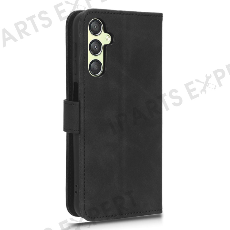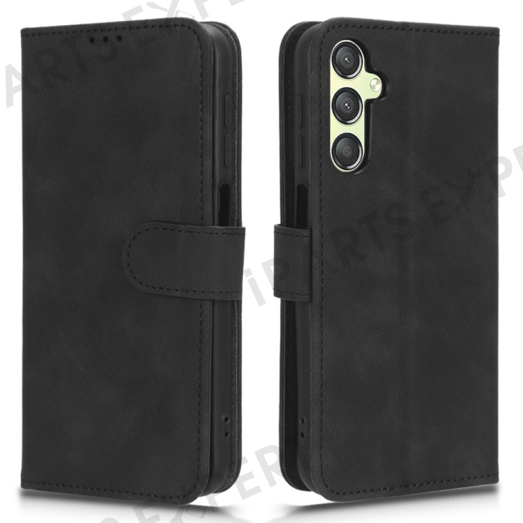 For Samsung Galaxy A24 4G (162.1 x 77.6 x 8.3mm) PU Leather Wallet Cell Phone Cover Anti-Dust Skin-touch Stand Case - Black