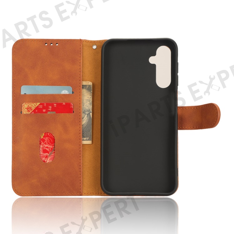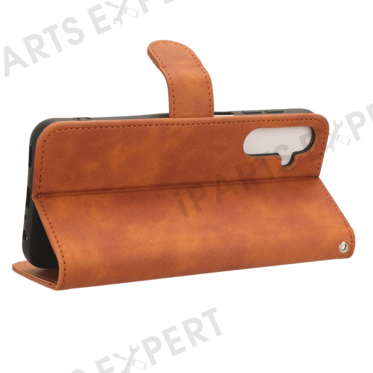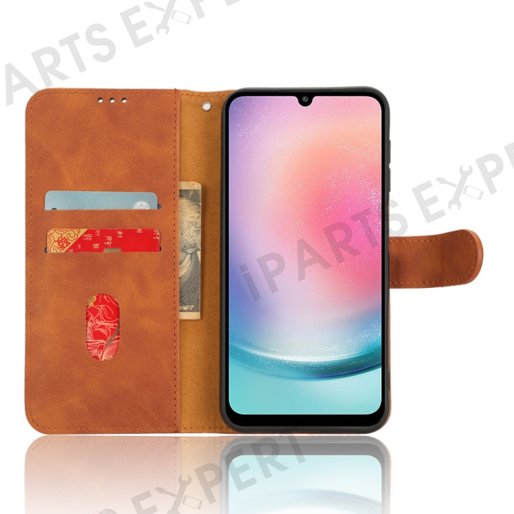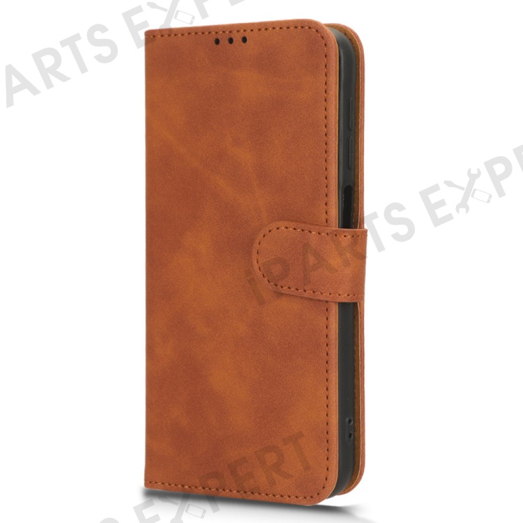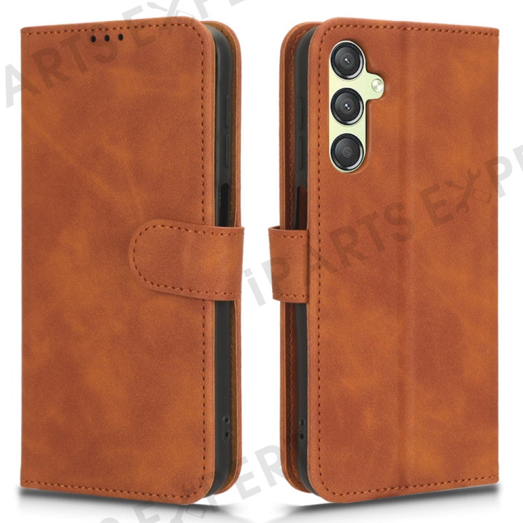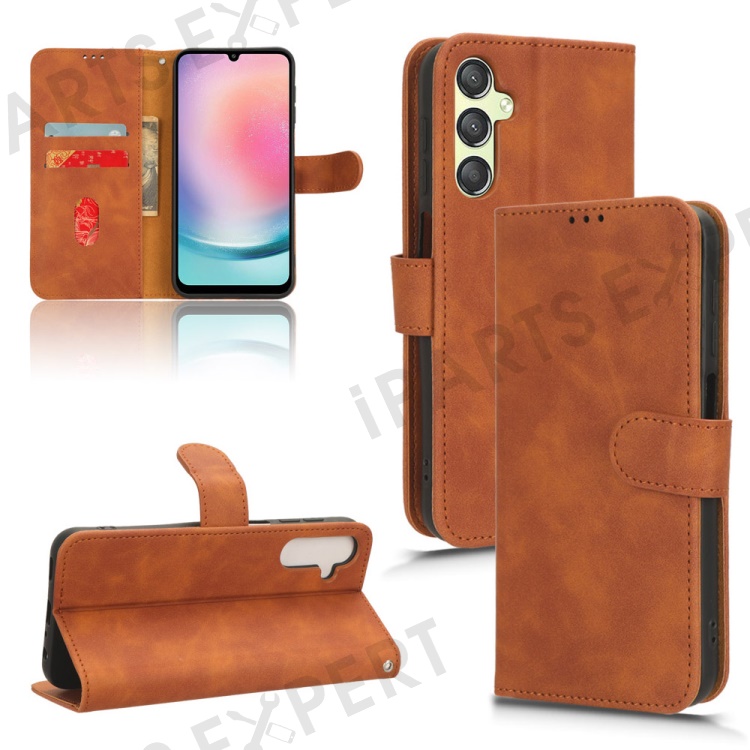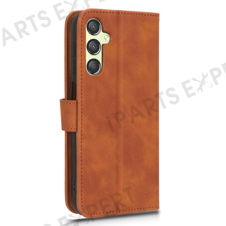 For Samsung Galaxy A24 4G (162.1 x 77.6 x 8.3mm) PU Leather Wallet Cell Phone Cover Anti-Dust Skin-touch Stand Case - Brown