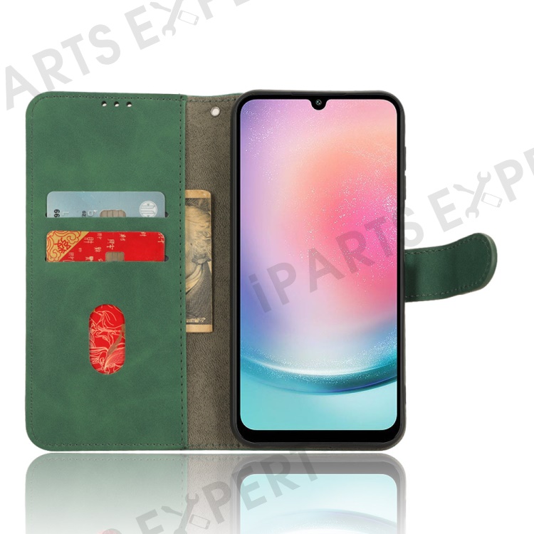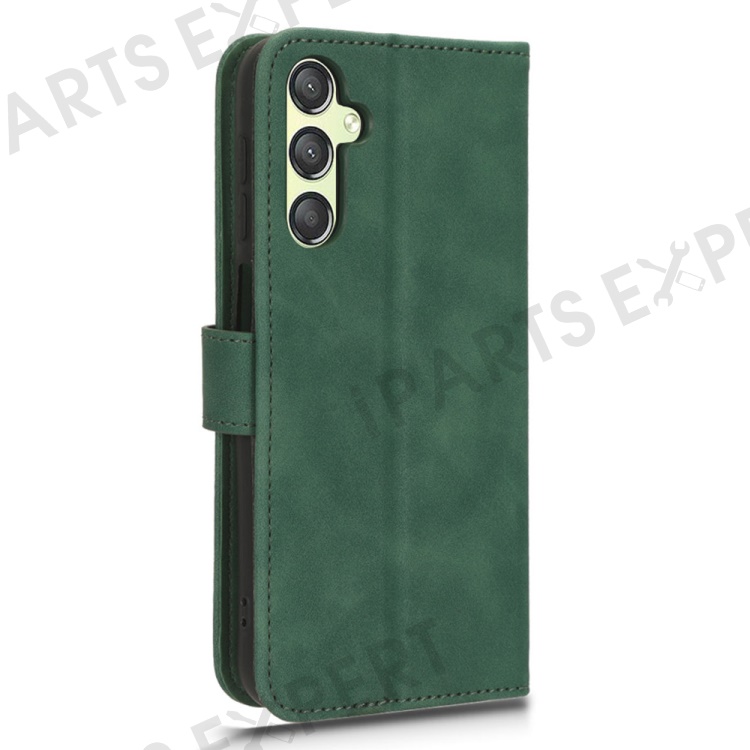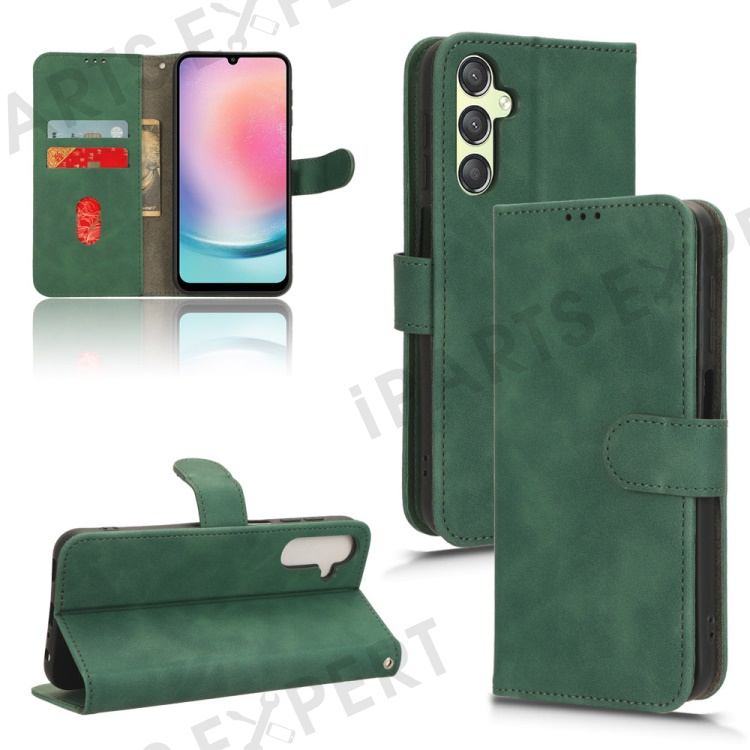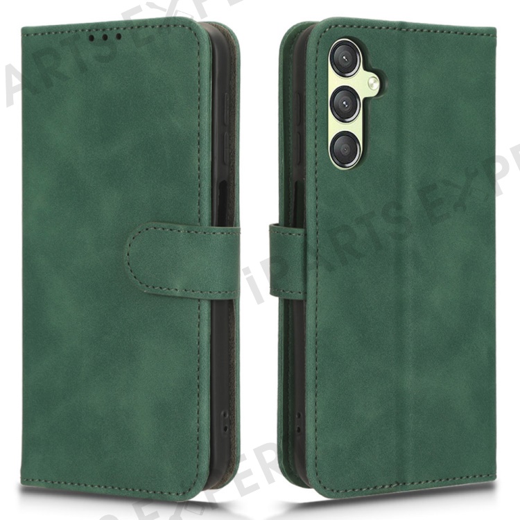 For Samsung Galaxy A24 4G (162.1 x 77.6 x 8.3mm) PU Leather Wallet Cell Phone Cover Anti-Dust Skin-touch Stand Case - Green