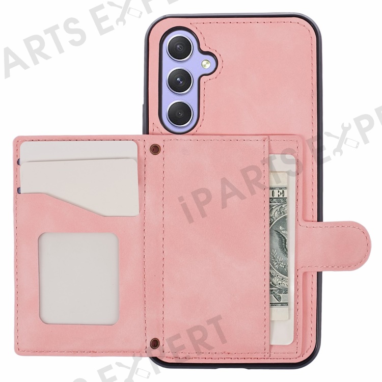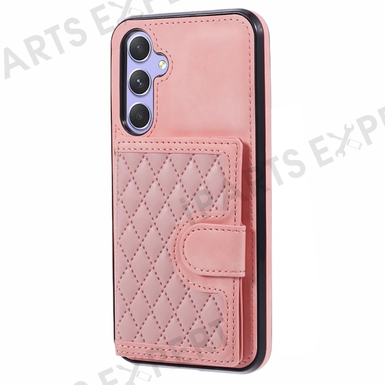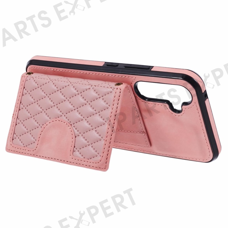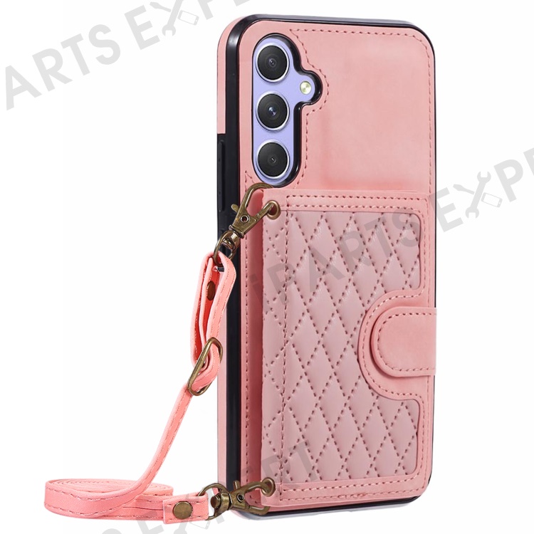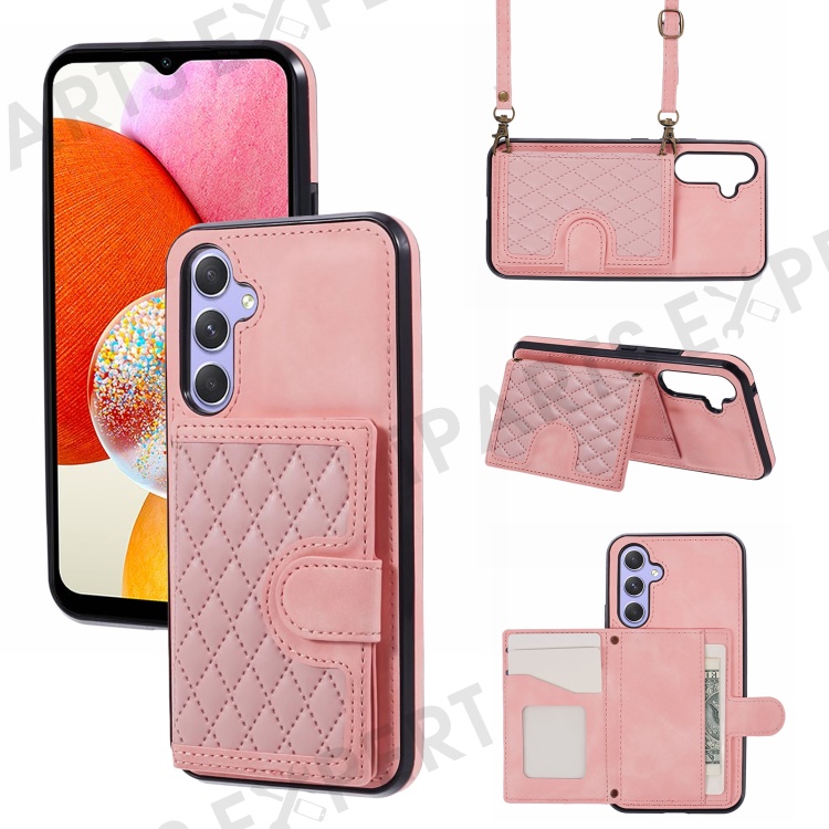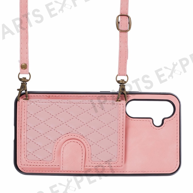 For Samsung Galaxy A25 5G (Global) (161.0 x 76.5 x 8.3mm) Cell Phone Case PU Leather+TPU Card Holder Back Cover with Long Strap - Rose Gold