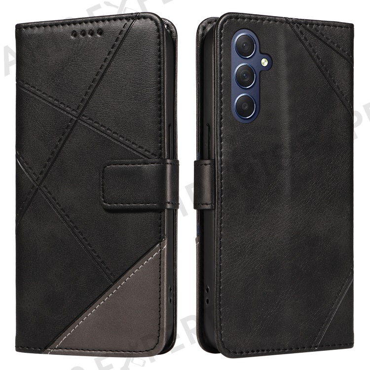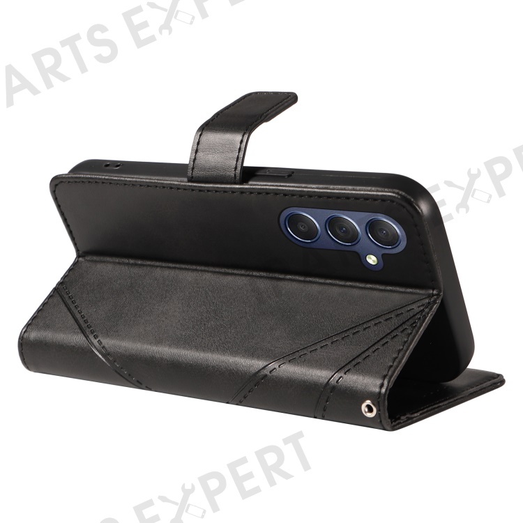 For Samsung Galaxy A25 5G (Global) (161.0 X 76.5 X 8.3mm) Case Geometric Line Leather Phone Cover Magnetic Clasp - Black
