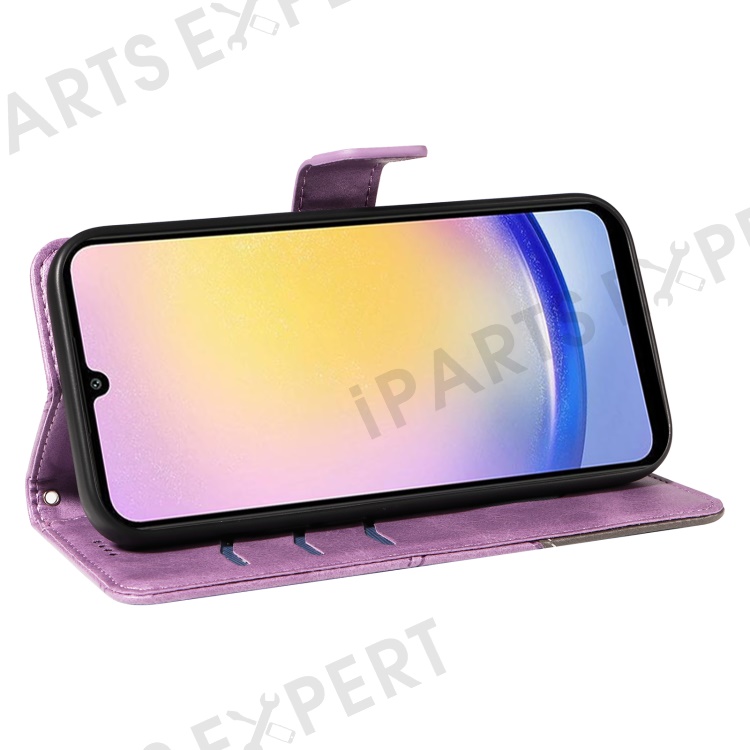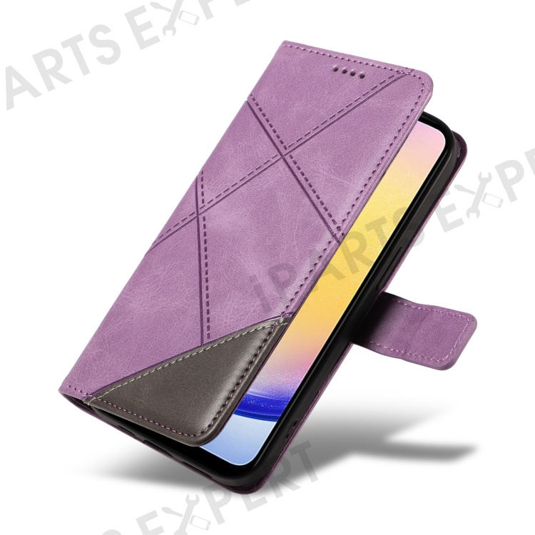 For Samsung Galaxy A25 5G (Global) (161.0 x 76.5 x 8.3mm) Case Geometric Line Leather Phone Cover Magnetic Clasp - Purple