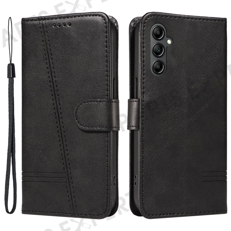 For Samsung Galaxy A25 5G (Global) (161.0 x 76.5 x 8.3mm) Case Leather Phone Cover with Strap - Black