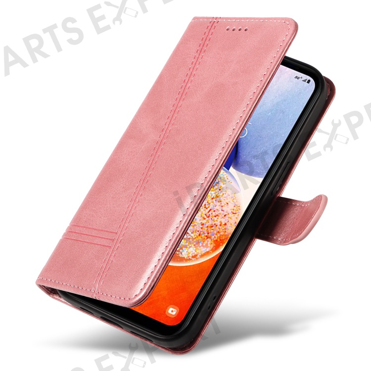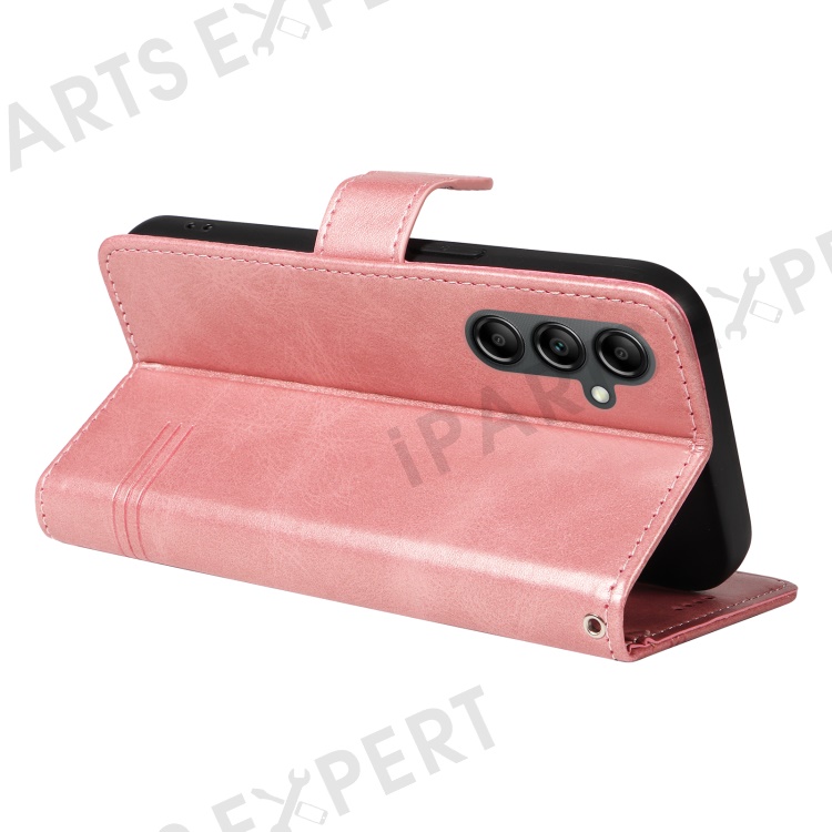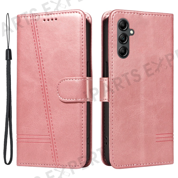 For Samsung Galaxy A25 5G (Global) (161.0 x 76.5 x 8.3mm) Case Leather Phone Cover with Strap - Rose Gold
