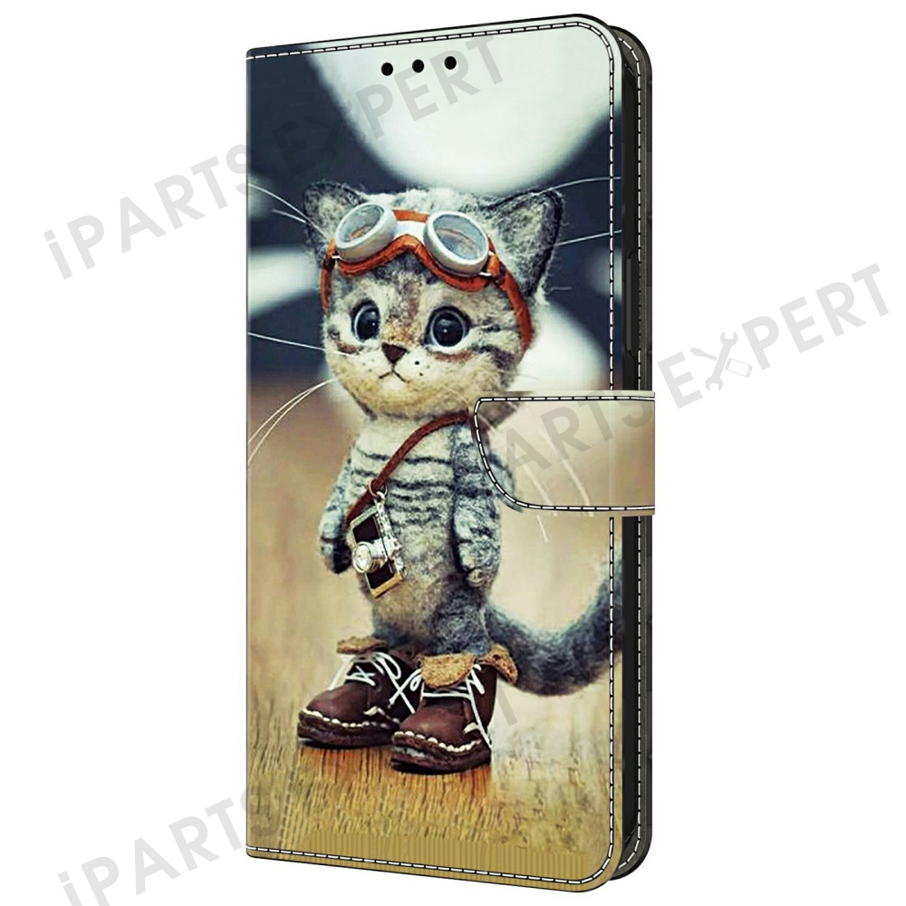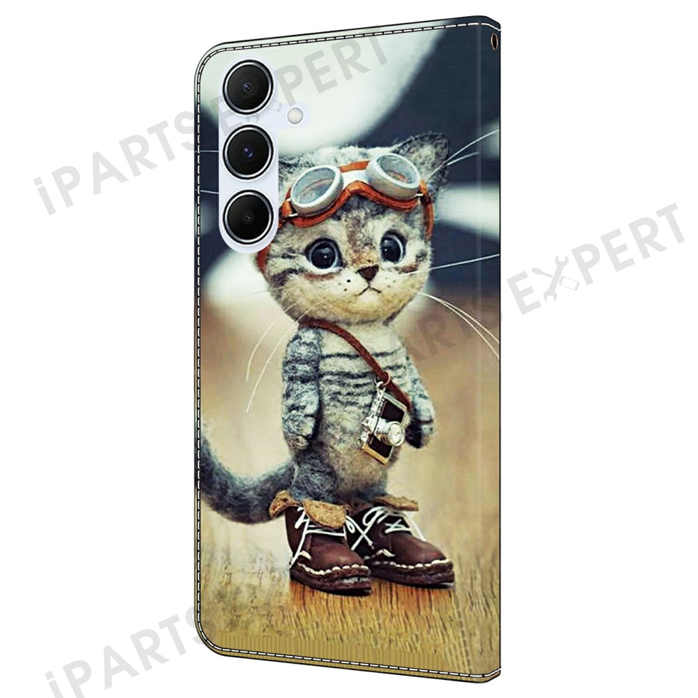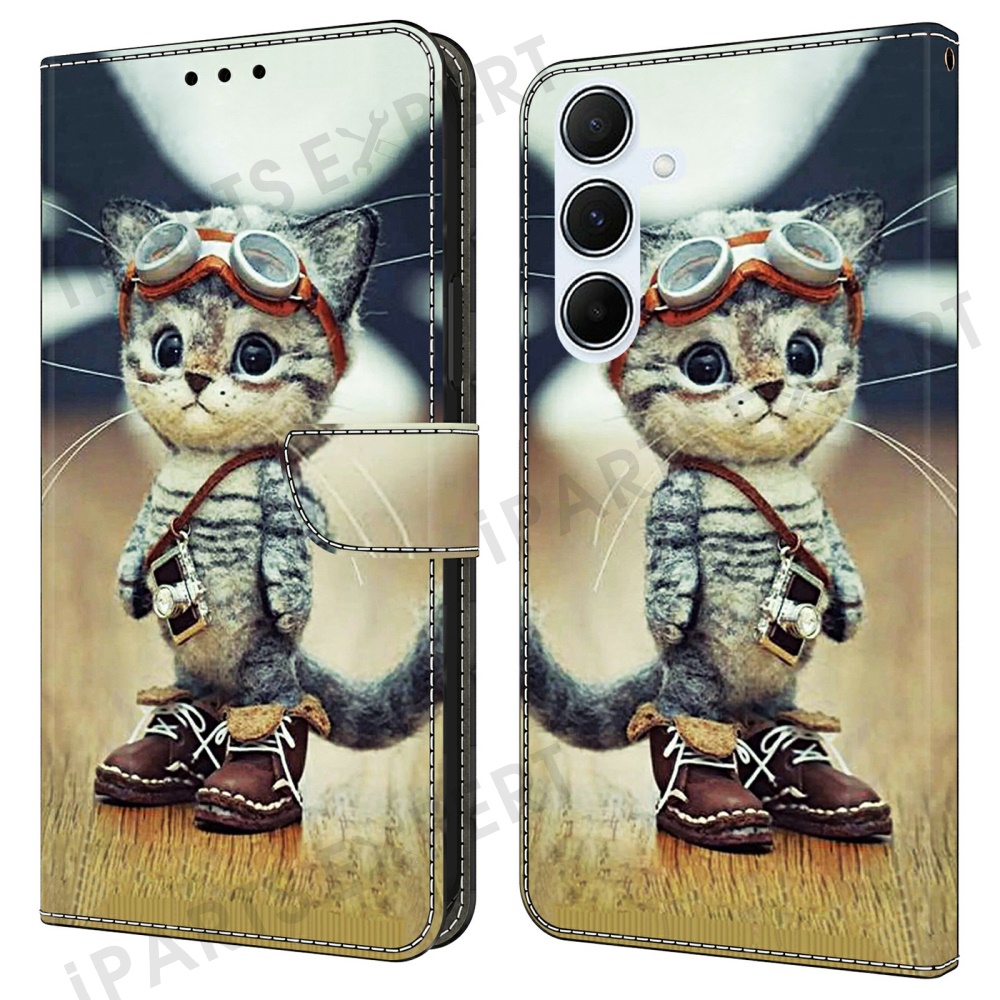 For Samsung Galaxy A25 5G (Global) (161.0 x 76.5 x 8.3mm) Case Pattern Printing Anti-Drop Leather Wallet Phone Cover - Naughty Cat