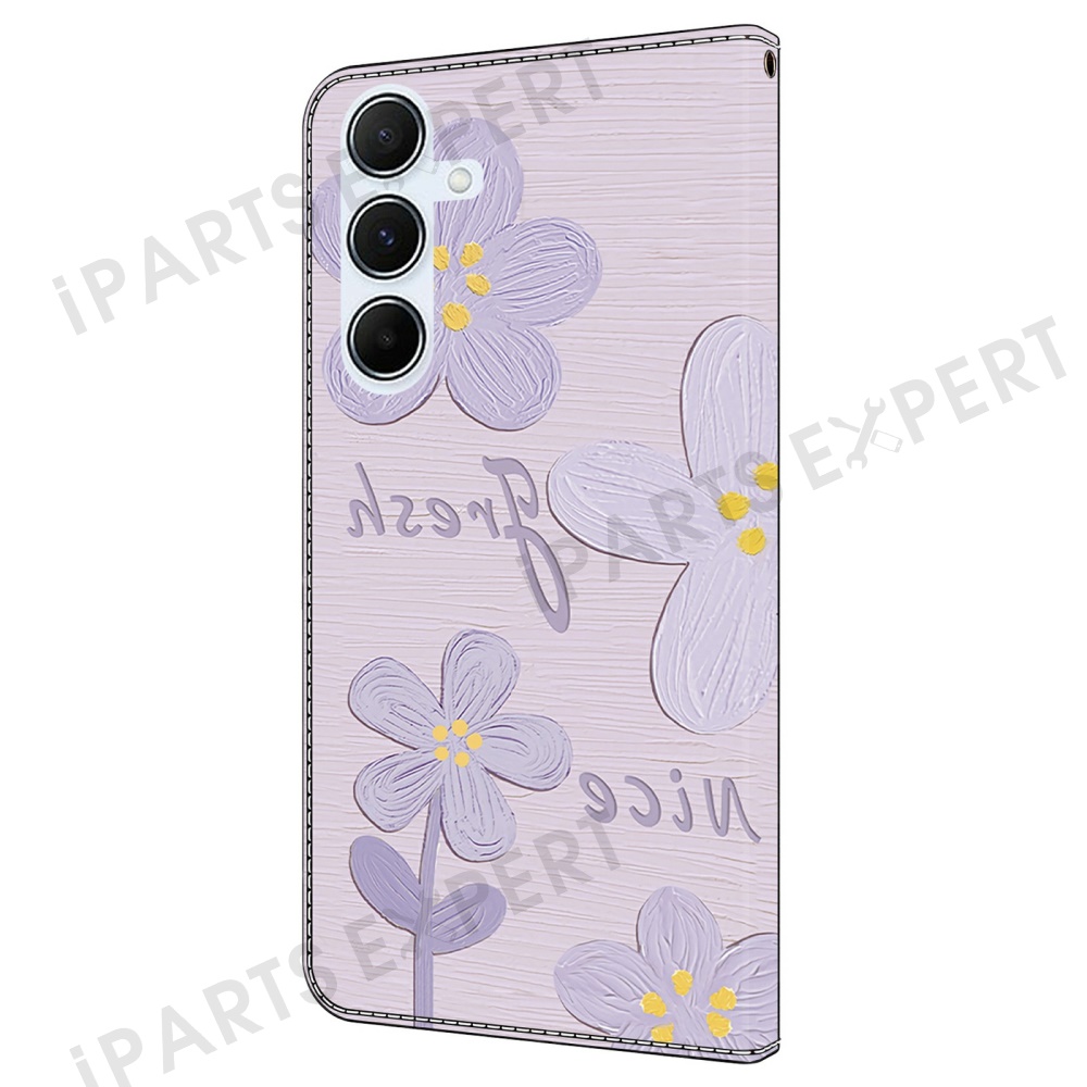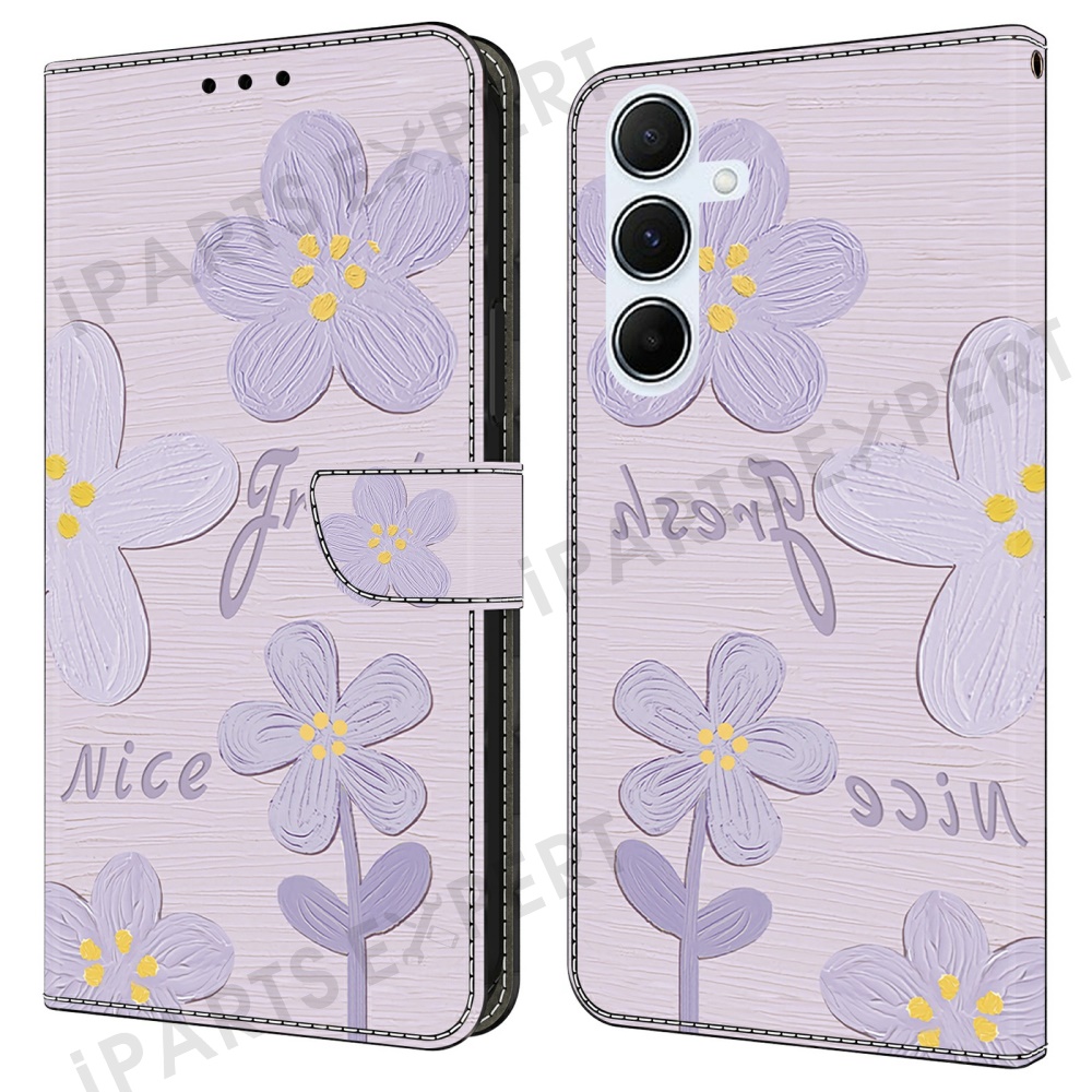 For Samsung Galaxy A25 5G (Global) (161.0 x 76.5 x 8.3mm) Case Pattern Printing Anti-Drop Leather Wallet Phone Cover - Purple Flowers