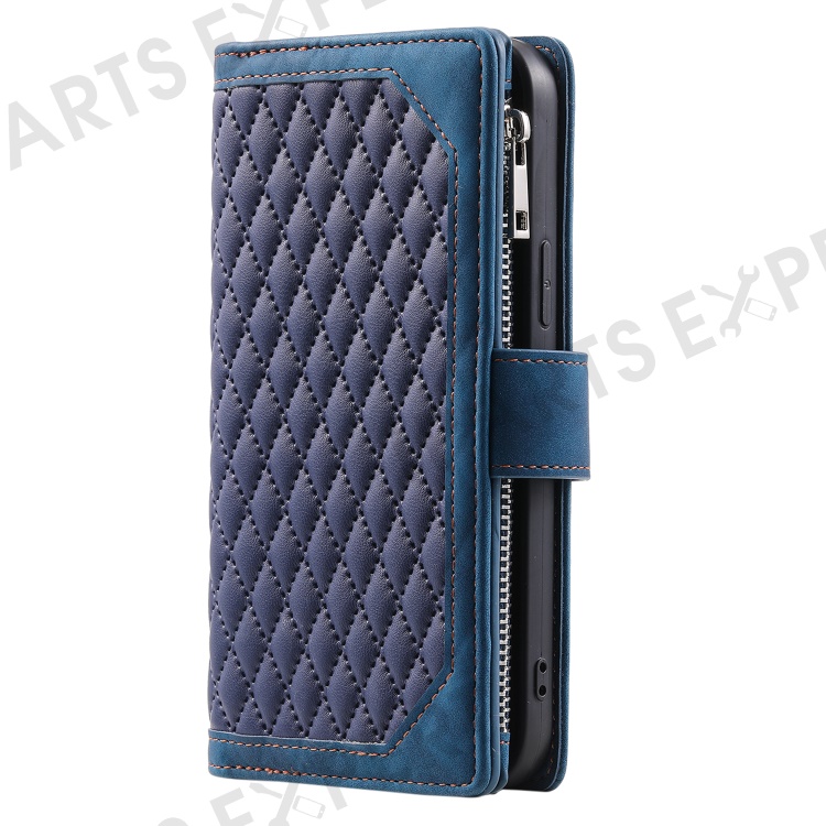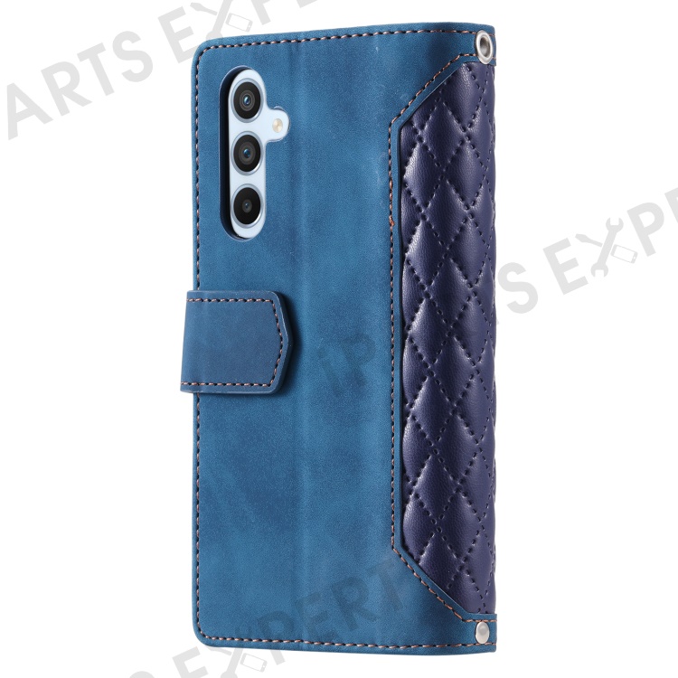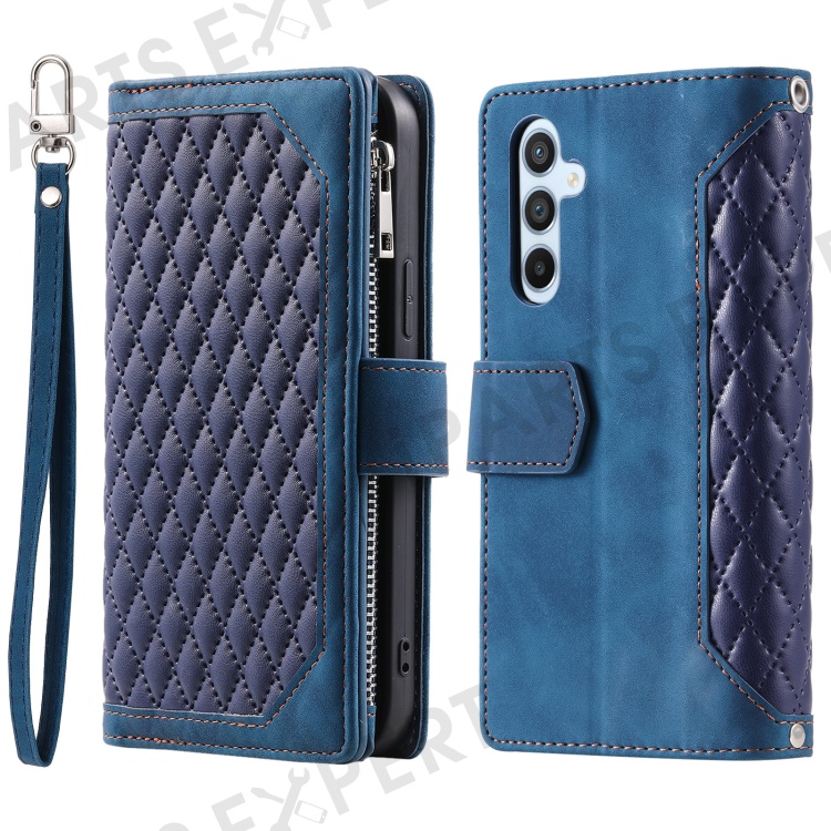 For Samsung Galaxy A25 5G (Global) (161.0 x 76.5 x 8.3mm) Rhombus Texture PU Leather Phone Case Shell Wallet Stand Cover with Hand Strap - Blue