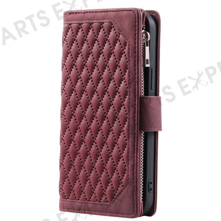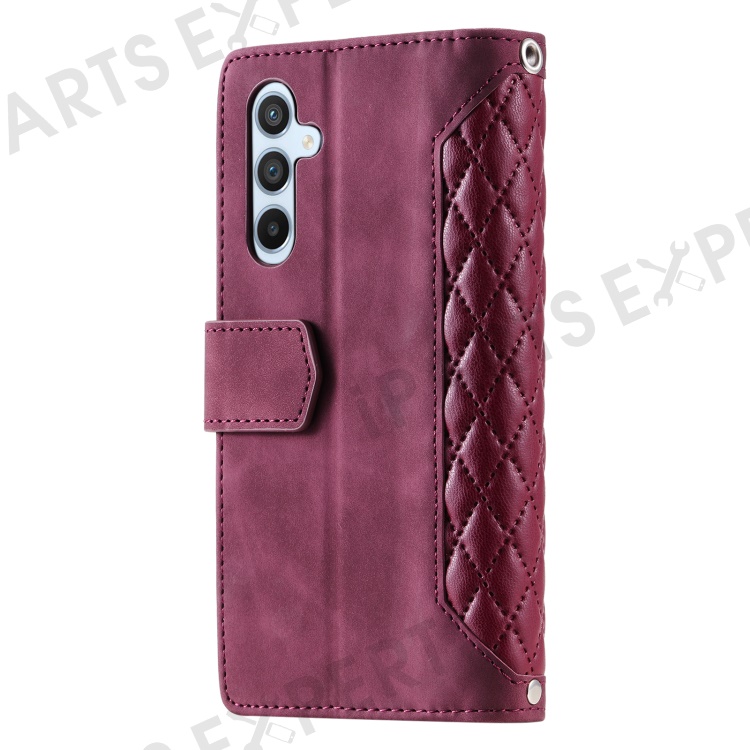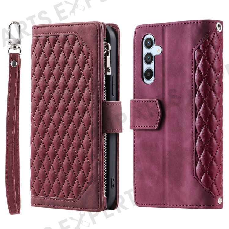For Samsung Galaxy A25 5G (Global) (161.0 x 76.5 x 8.3mm) Rhombus Texture PU Leather Phone Case Shell Wallet Stand Cover with Hand Strap - Wine Red