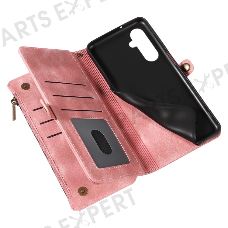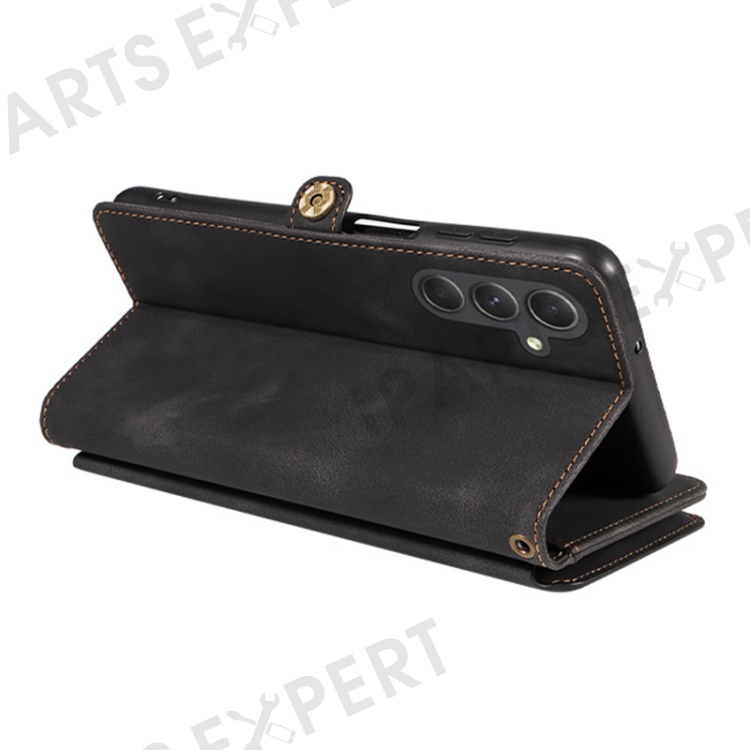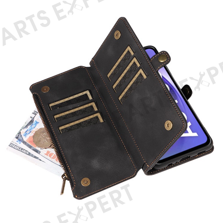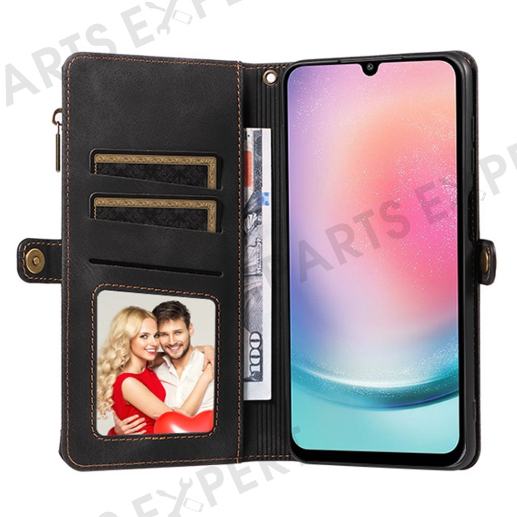 For Samsung Galaxy A25 5G (Global) (161.0 x 76.5 x 8.3mm) Zipper Pocket Wallet Stand Leather Case Drop-proof Phone Cover with Strap - Black