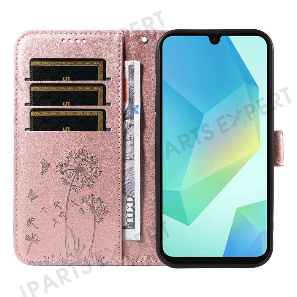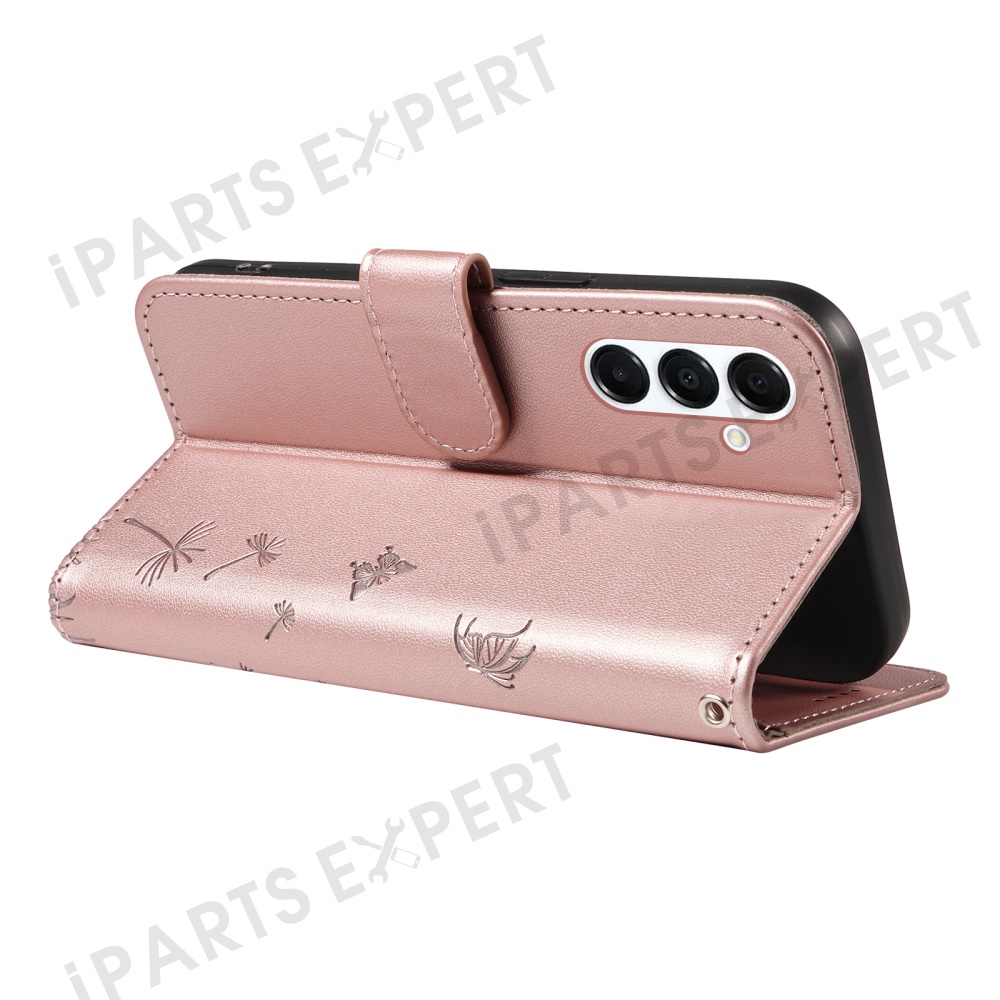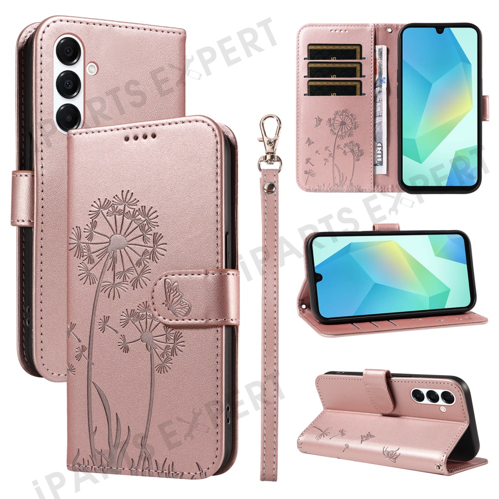 For Samsung Galaxy A17 5G / A17 4G / A26 5G / A16 5G / A16 4G Leather Case Wallet Phone Cover Dandelion Imprint - Rose Gold