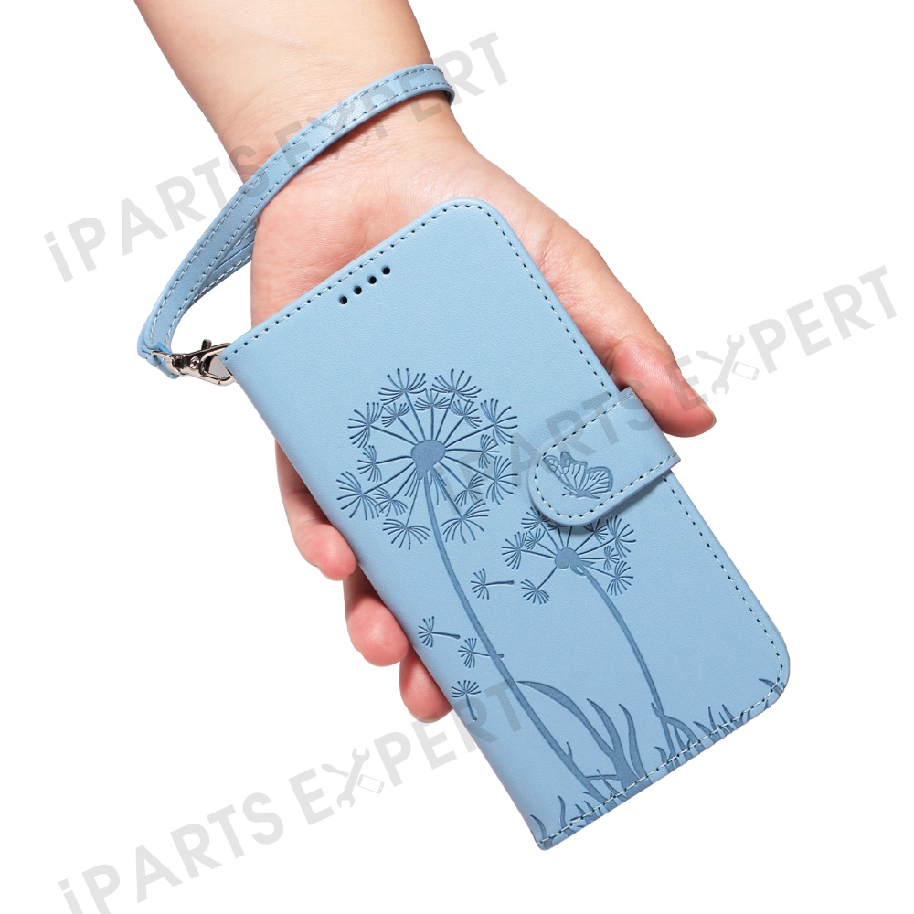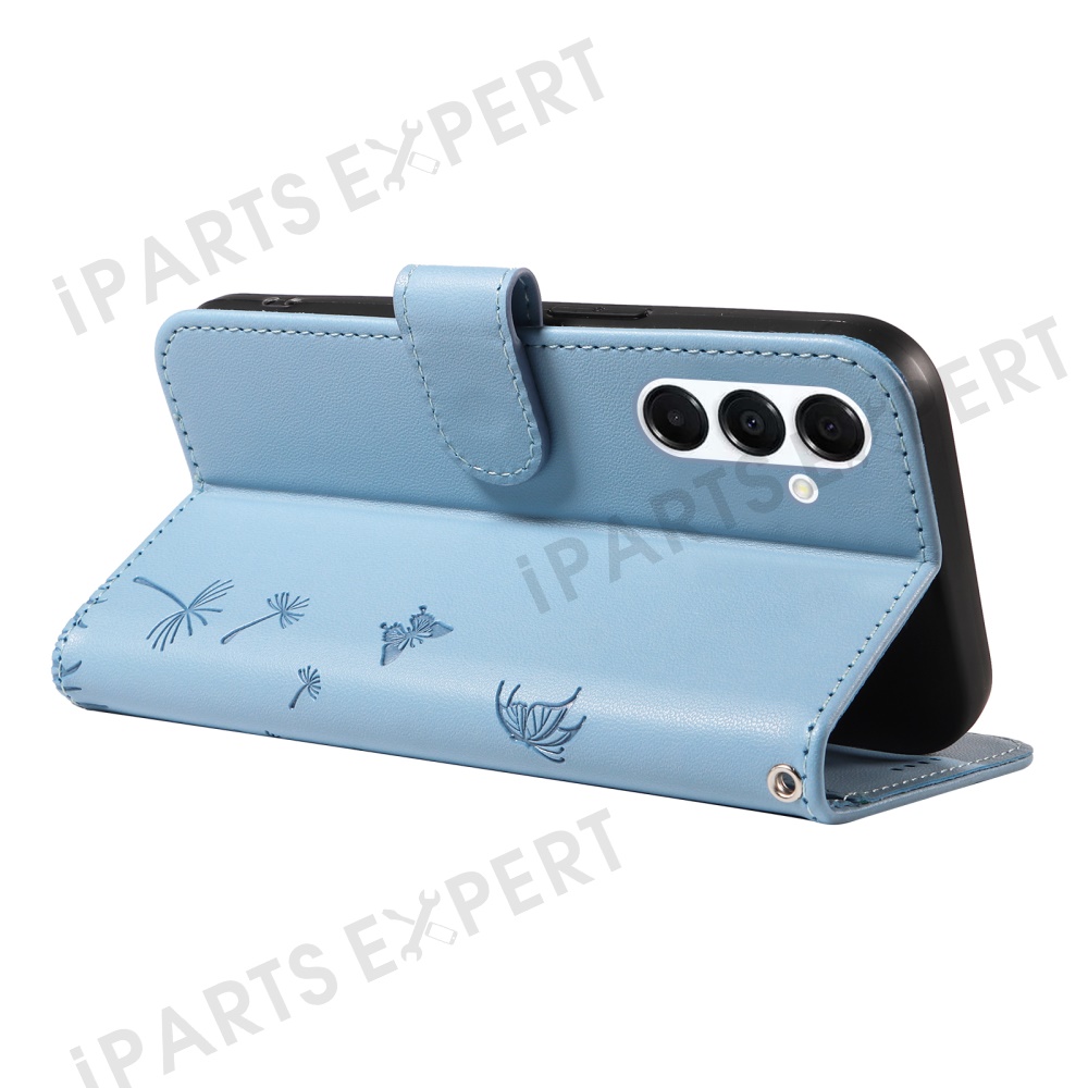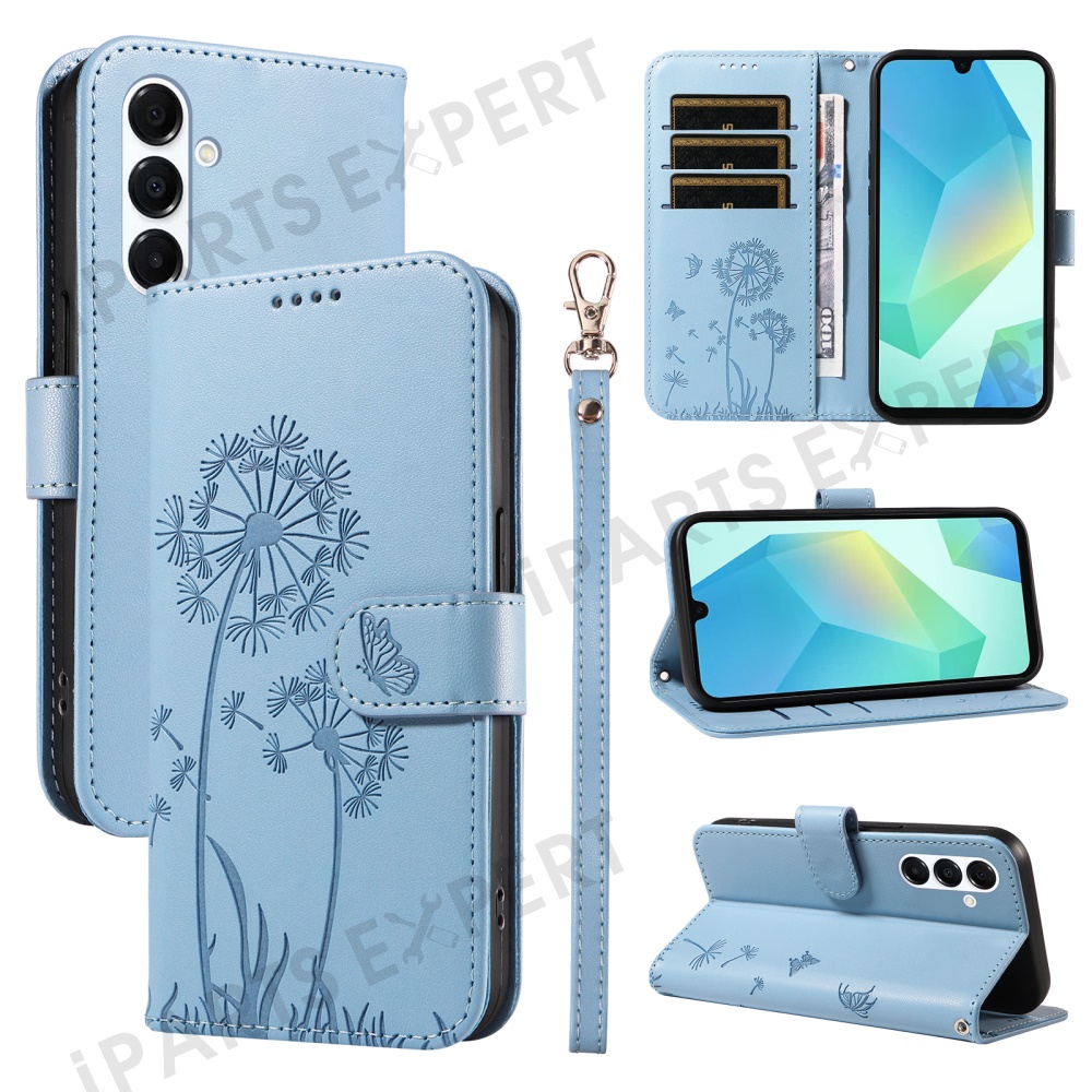 For Samsung Galaxy A17 5G / A17 4G / A26 5G / A16 5G / A16 4G Leather Case Wallet Phone Cover Dandelion Imprint - Sky Blue