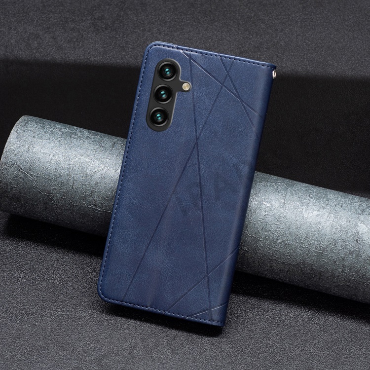 For Samsung Galaxy A26 5G Case Card Slots Geometry Imprint Leather Phone Cover - Blue