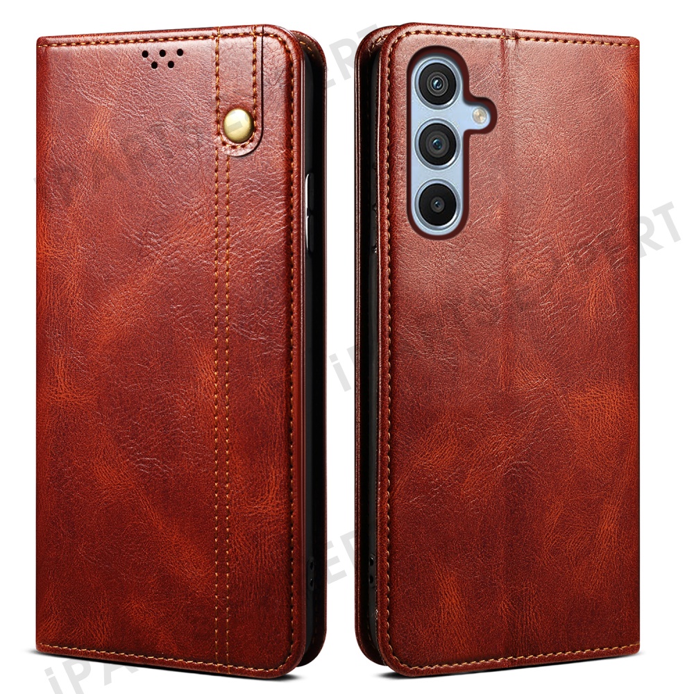 For Samsung Galaxy A26 5G Case Crazy Horse Texture Waxy Leather Wallet Stand Phone Cover - Brown