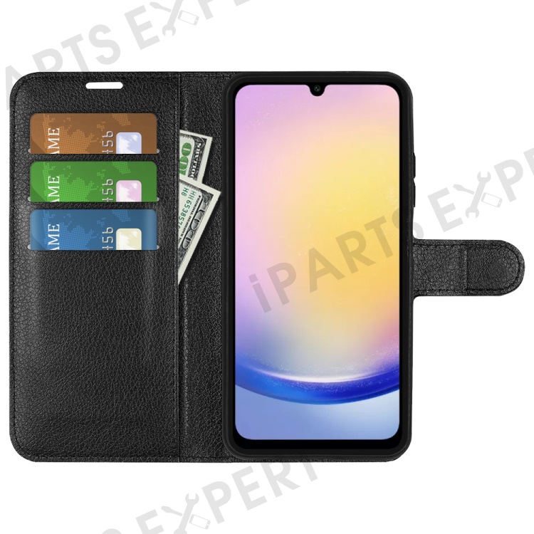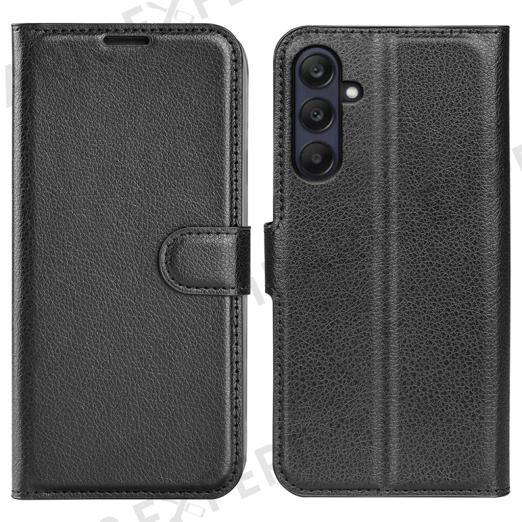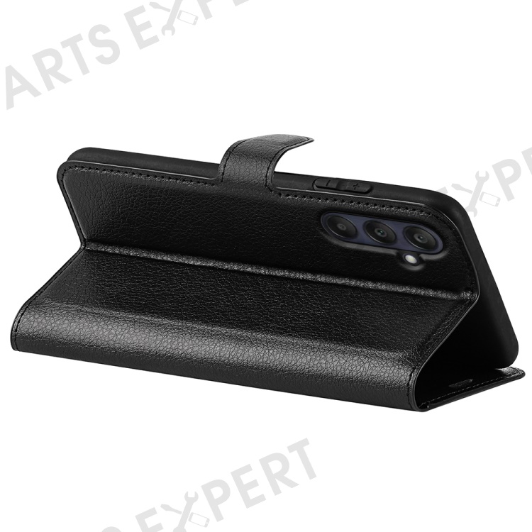 For Samsung Galaxy A26 5G Case Litchi Texture Shockproof Leather Wallet Phone Cover - Black
