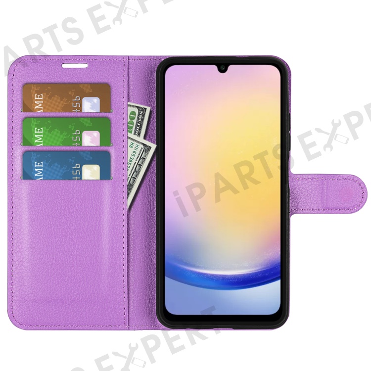 For Samsung Galaxy A26 5G Case Litchi Texture Shockproof Leather Wallet Phone Cover - Purple