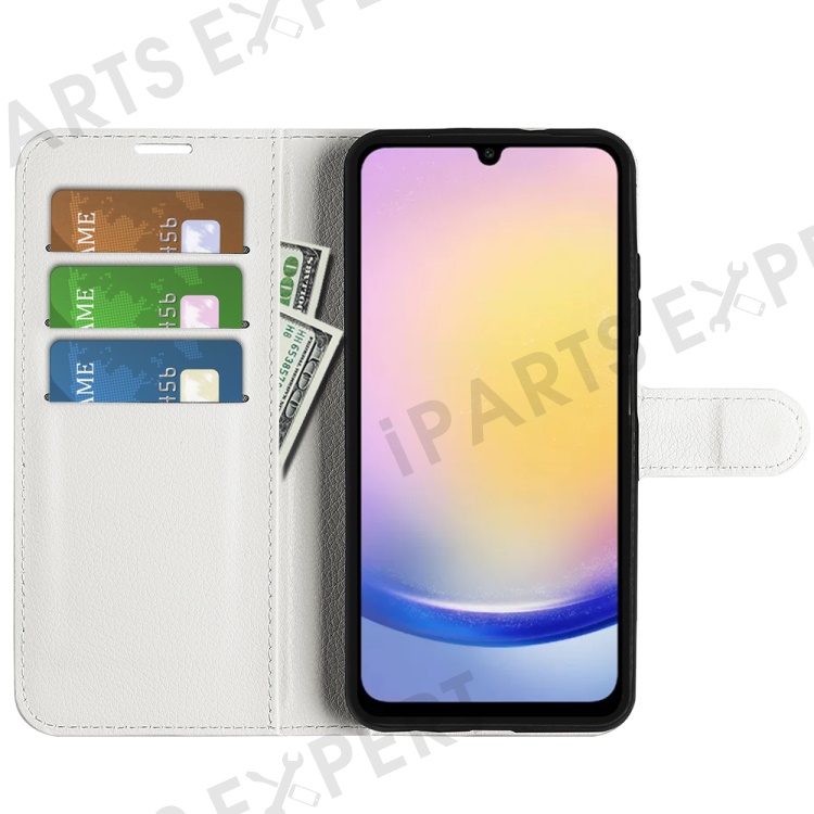 For Samsung Galaxy A26 5G Case Litchi Texture Shockproof Leather Wallet Phone Cover - White