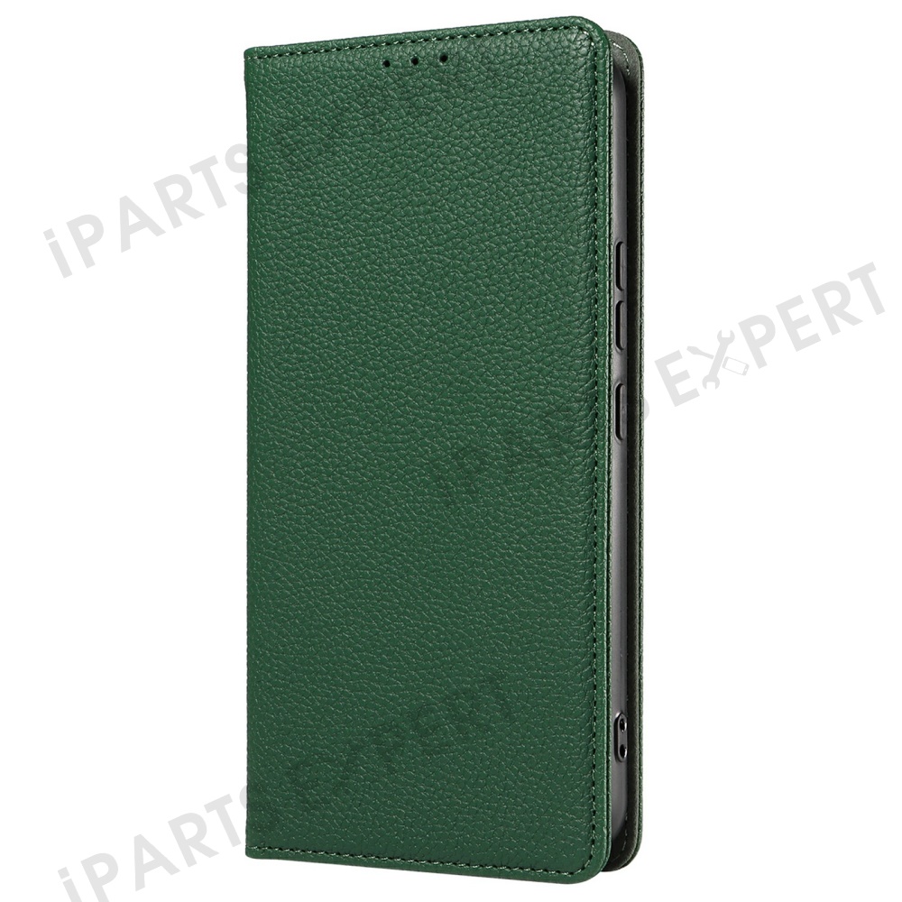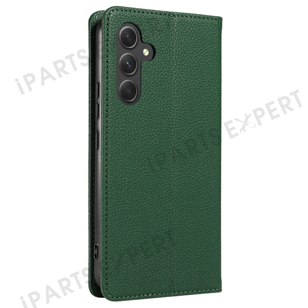 For Samsung Galaxy A26 5G Case Magnetic Litchi Texture Wallet Leather Phone Cover with Wrist Strap - Green