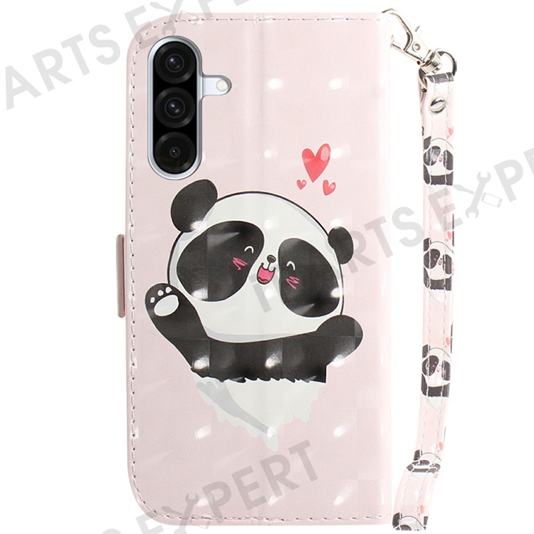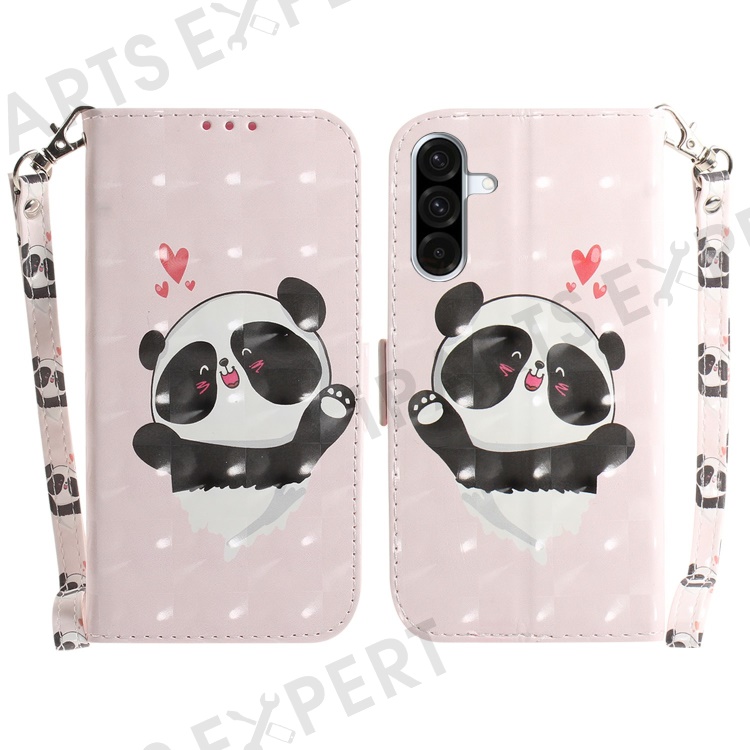 For Samsung Galaxy A17 5G / A17 4G / A26 5G Case Pattern Printing Leather Wallet Phone Cover with Wrist Strap - Love Heart Panda