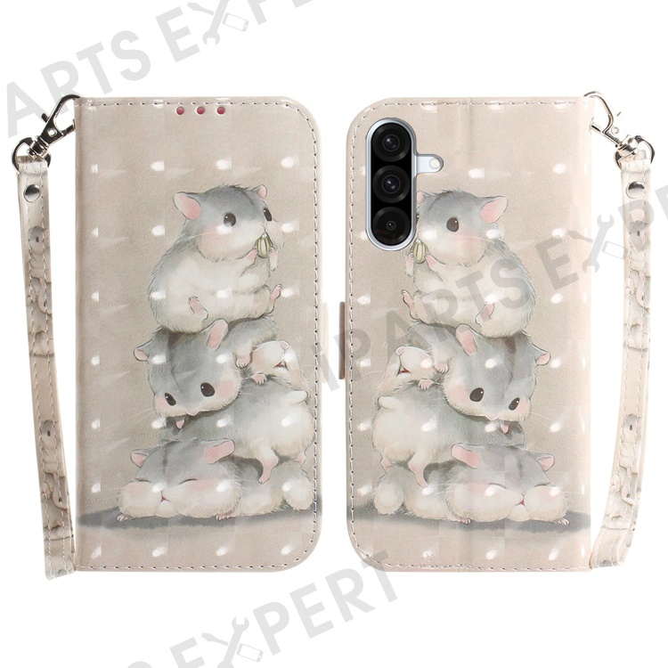 For Samsung Galaxy A17 5G / A17 4G / A26 5G Case Pattern Printing Leather Wallet Phone Cover with Wrist Strap - Stacking Squirrels