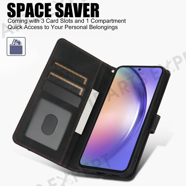 For Samsung Galaxy A26 5G Case PU Leather Phone Cover with Wallet Stand View - Black